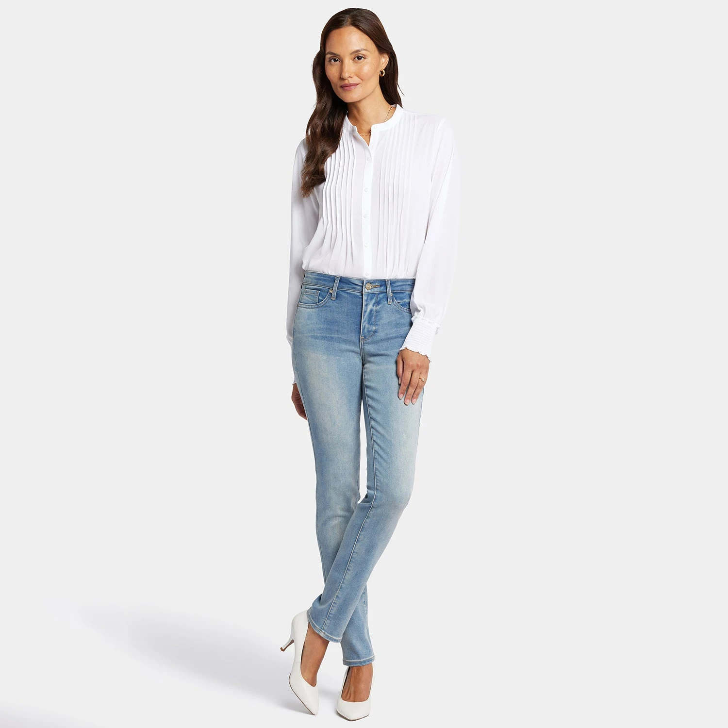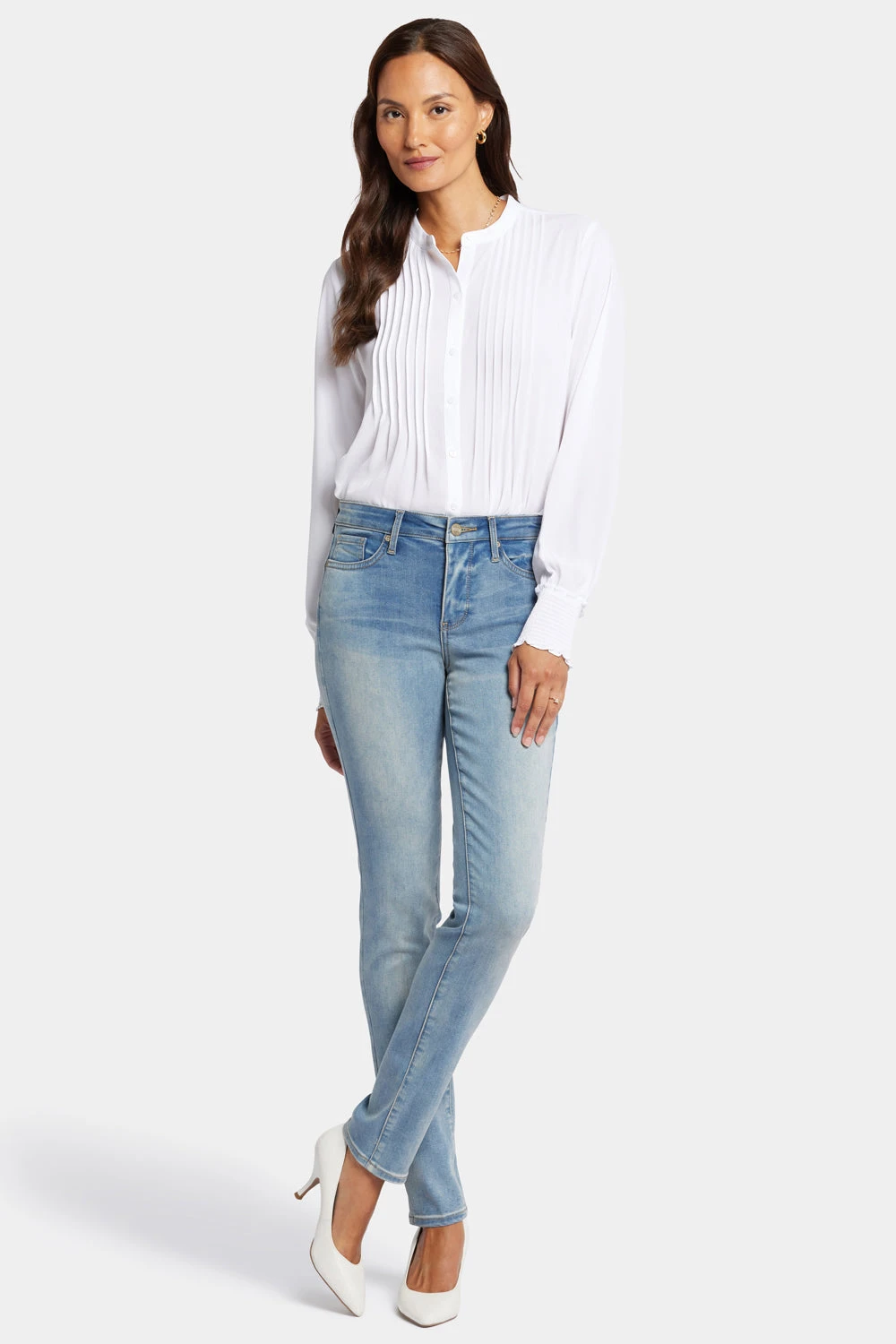 Get ready to turn every head you walk past. NYDJ’s Alina Skinny Jeans are the jeans of your dreams with some ankle-skimming style. Our exclusive Lift Tuck® Technology flattens your front, using a proprietary slimming panel with a patented criss-cross design, for an ultra-flattering fit that completes any outfit. Dress them up or dress them down with heels or flats. Features zip fly and button closure.