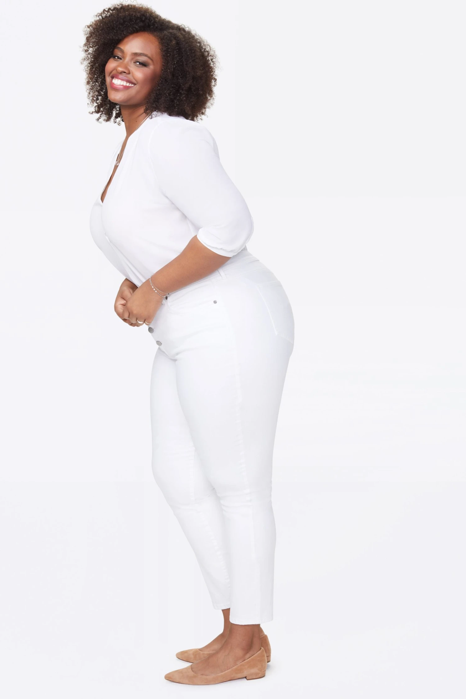 Here’s the skinny—we’ve got the jean you need for a second-skin fit with stretch and comfort that’s second to none. NYDJ’s Ami Skinny Ankle-Length Women’s Jeans in Plus Size with Exposed Button Fly flatter every inch of you, giving you the sculpted legs, tucked tummy and lifted curves you’ll love. An exposed four-button fly lends this flattering style a unique touch. Our unique Lift Tuck® Technology uses a proprietary slimming panel with a patented criss-cross design for a more slender silhouette. Features classic five-pocket styling.