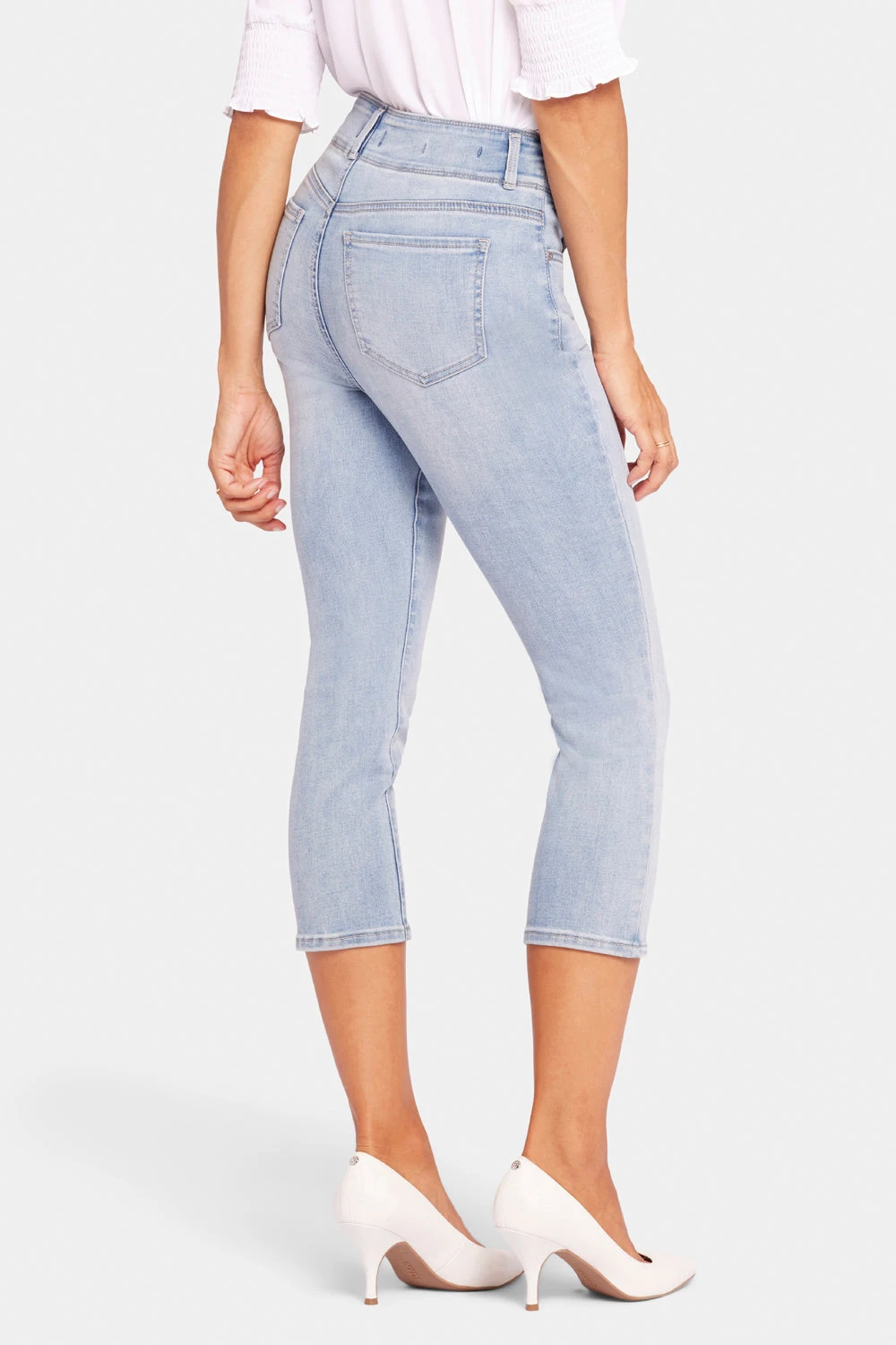 Meet the capri-length version of our best-selling skinny fit, with a trending higher waist that enhances curves. NYDJ’s Ami Skinny Capri Jeans with High Rise offer stretch and comfort that’s second to none while giving you sculpted legs, a tucked tummy and a little lift in the back. Our unique Lift Tuck® Technology smooths out your front by using a proprietary slimming panel with a patented criss-cross design, and a tall waistband keeps the fit even more flattering. Features five-pocket styling, zip fly and button closure. Afterglow is a vintage-inspired light stone wash with tacking along the waistband and fly, whiskers on the front hips, soft hand sanding and inner-thigh chevrons. This jean is made with earth-friendly methods that result in reduced consumption of water, chemicals and/or energy.