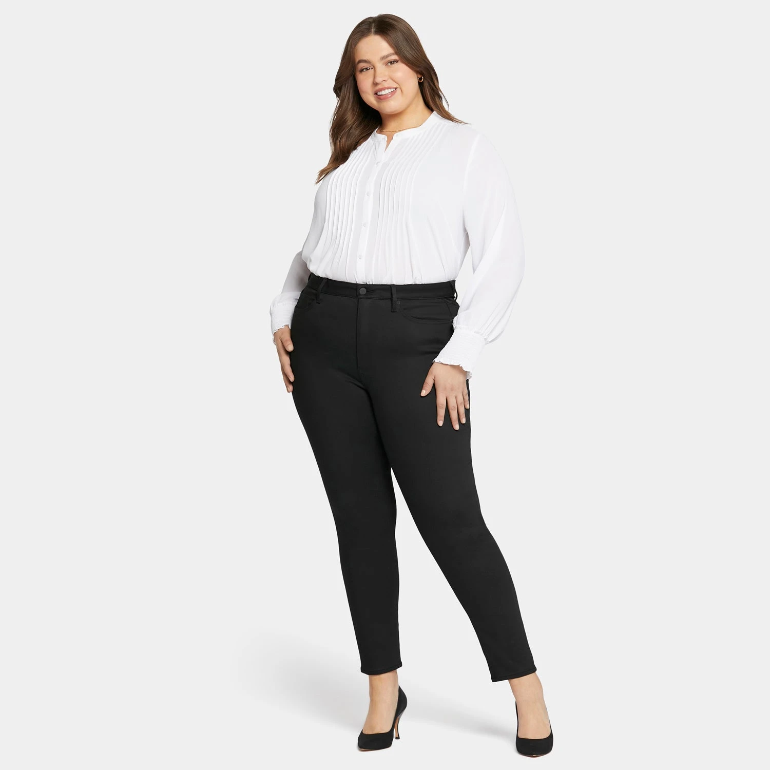 The skinny jeans you love for a second-skin fit are now available in soft and stretchy BlackLast™ denim. NYDJ’s Ami Skinny Jeans in Plus Size with High Rise flatter every inch of you, giving you sculpted legs, a tucked tummy and lifted curves. Made of up to 17 recycled plastic bottles per pair, every BlackLast™ style provides lasting color intensity with 50% lower environmental impact than traditional denim. Our unique Lift Tuck® Technology helps flatten in the front by using a proprietary slimming panel with a patented criss-cross design, while an extra-high waist emphasizes the curvy silhouette. Features classic five-pocket styling, zip fly and button closure.