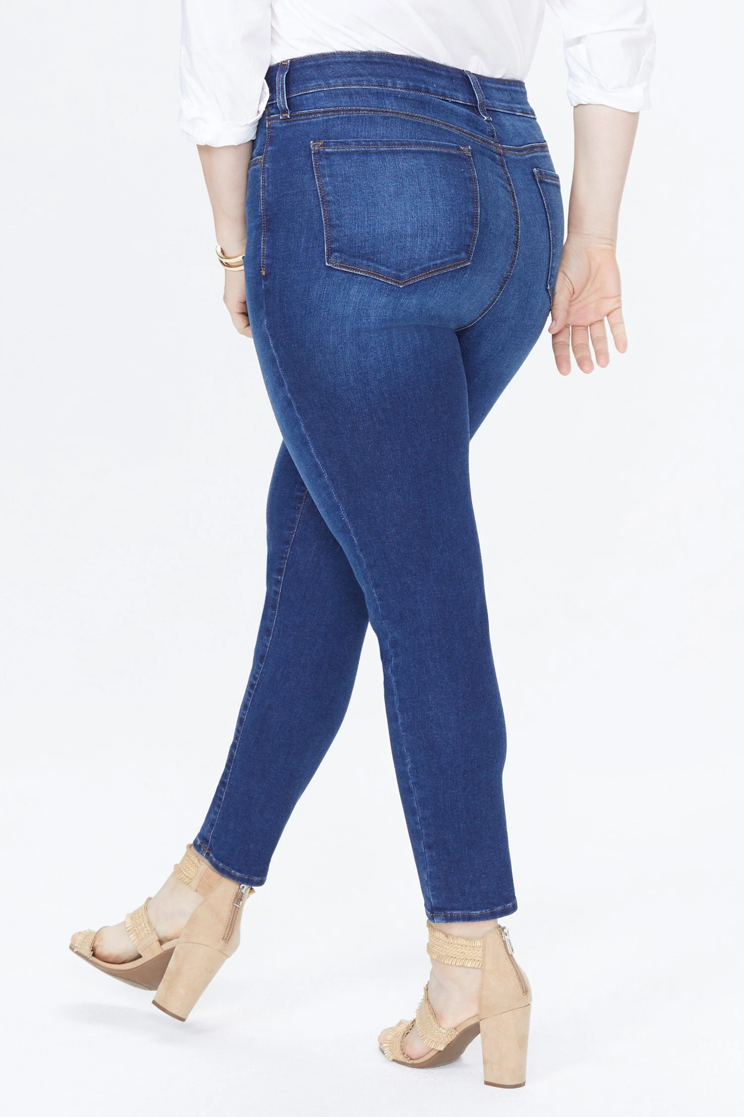 Here’s the skinny—we’ve got the jean you need for a second-skin fit with stretch and comfort that’s second to none. NYDJ’s Ami Skinny Jeans in Plus Size flatter every inch of you, giving you the sculpted legs, tucked tummy and lifted curves you love. Our unique Lift Tuck® Technology flatters in the front, using a proprietary slimming panel with a patented criss-cross design for a more slender silhouette. Features classic five-pocket styling, zip fly and button closure.