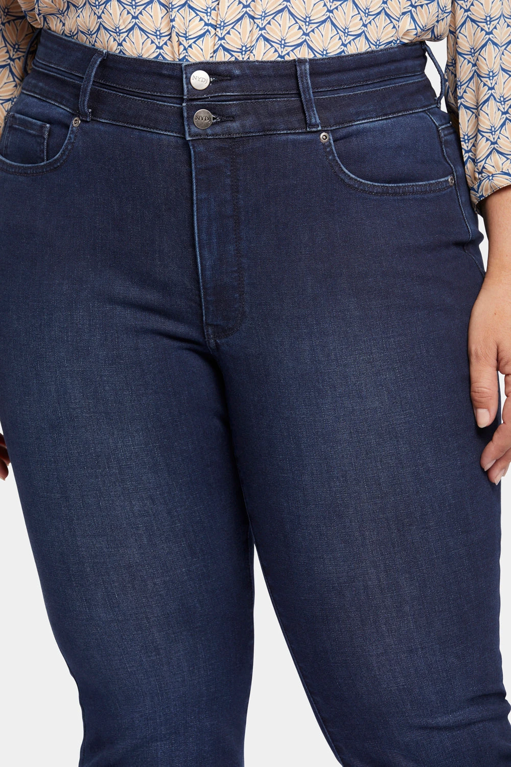 NYDJ’s Ava Flared Jeans in Plus Size with High Rise and Paneled Waistband have your curves covered. They’re also highly flattering thanks to our signature Lift Tuck® Technology, which uses a proprietary inner panel with a patented criss-cross design to flatten in front and lift in back. These comfortable and stretchy jeans feature an on-trend silhouette that hugs the waist, hips and thighs, then flares out at the hem for a bold statement. Finished with classic five-pocket styling and a zip fly with two button closures. Underground is a rich dark indigo wash with a classic look, featuring very subtle fading on the front thighs, knees and seat. This jean is made with earth-friendly methods that result in reduced consumption of water, chemicals and/or energy.