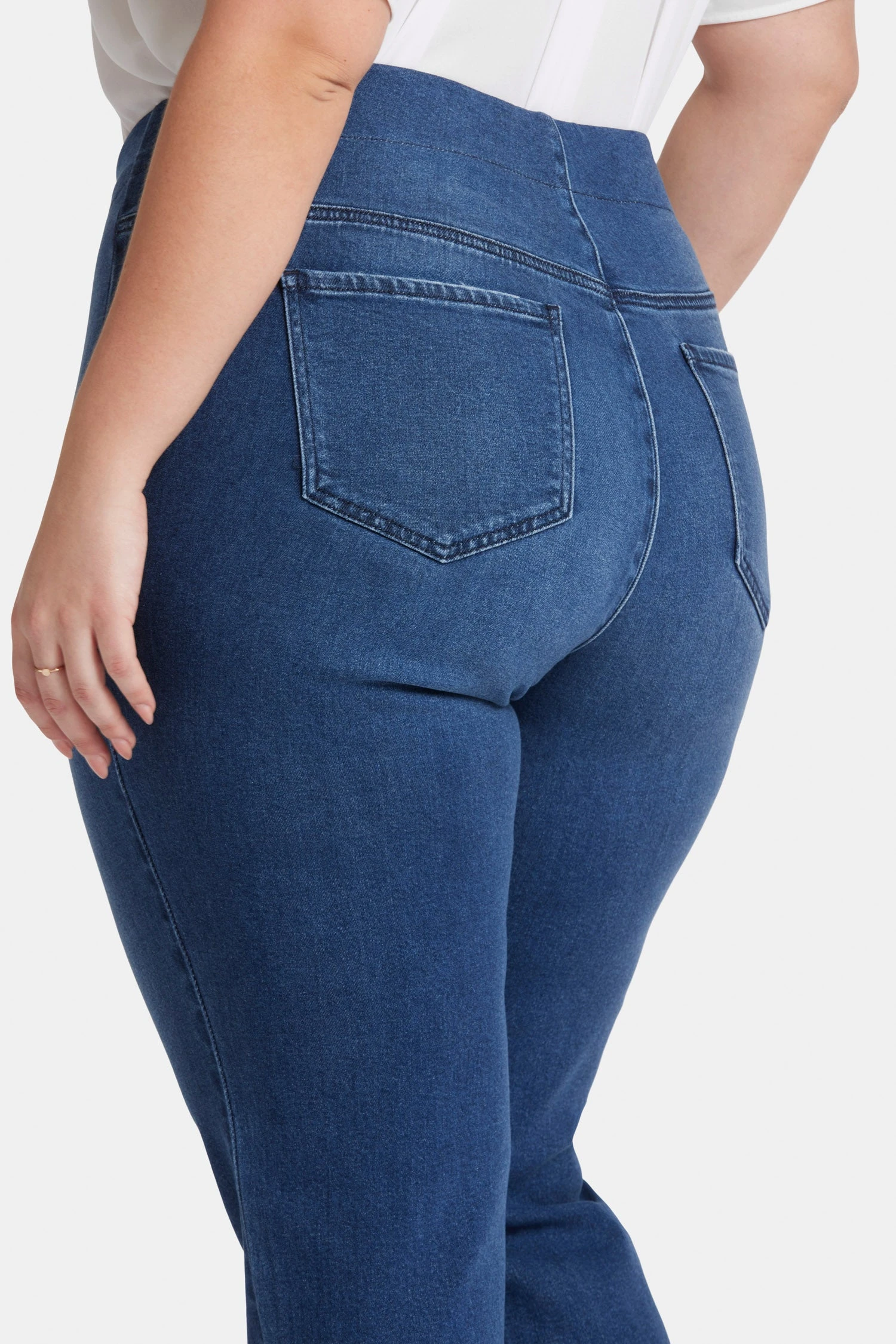 Slip into curve-sculpting softness with the Bailey Relaxed Straight Ankle Pull-On Jeans in Plus Size by NYDJ. Made from Soft-Contour Denim™, our softest denim ever, these jeans feature a soft woven blend with a touch of stretch and a contouring fit that gently sculpts curves for a smooth, body-hugging look. A wide pull-on waistband comfortably holds you in, while Lift Tuck® Technology uses a proprietary slimming panel to further smooth and shape. Finished with functional back pockets and polished deep hems. Mission Blue is a medium-dark blue wash with whiskers, soft fading and sanding in all the right places. This jean is made with earth-friendly methods that result in reduced consumption of water, chemicals and/or energy and with Tencel™ Lyocell, a sustainable wood-based fiber.