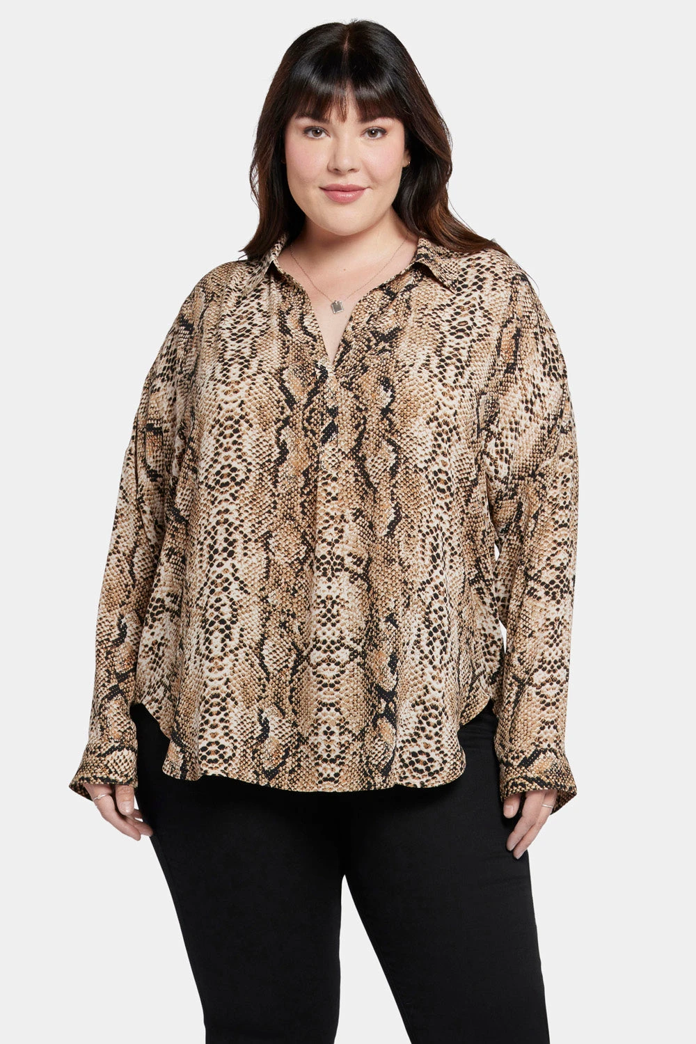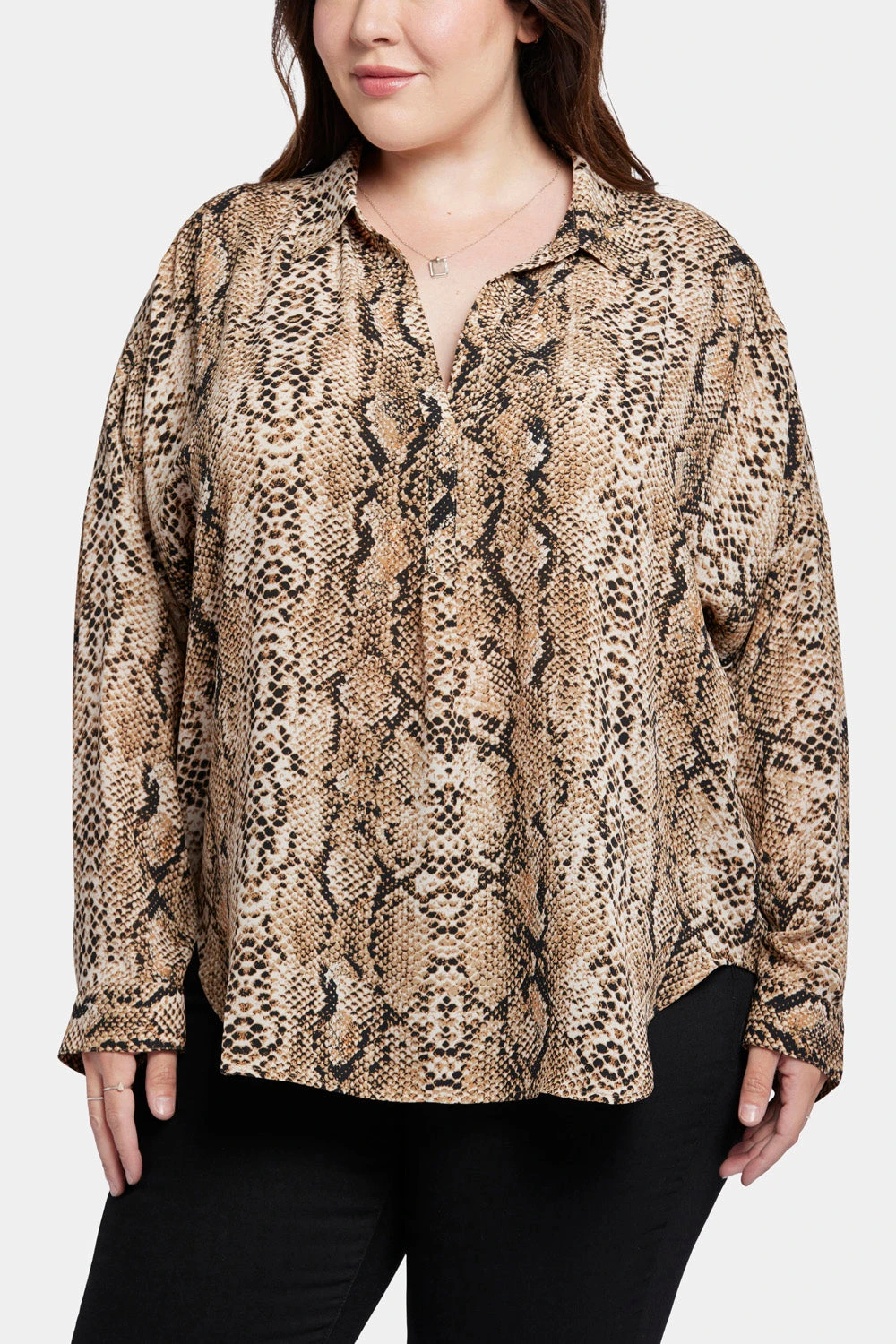Becky Blouse In Plus Size – Victorian Python Pink Taupe