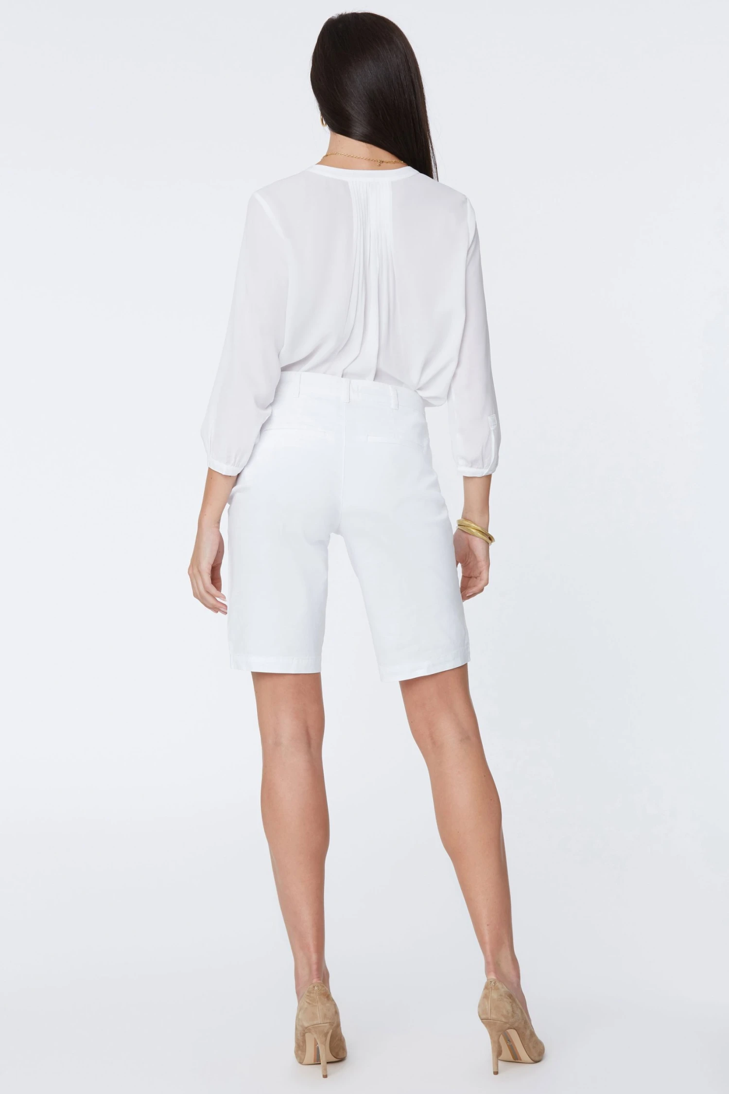 The Bermuda Women’s Shorts by NYDJ were made to look and feel good through long days and nights. Ultra-soft fine line twill stays polished throughout all your adventures, whether you’re strolling down the boardwalk or power-shopping down the promenade. Our signature Lift Tuck® Technology slims from within to help you look a size smaller. This new take on a classic, warm-weather style features four-pocket styling and a zip fly with button closure.