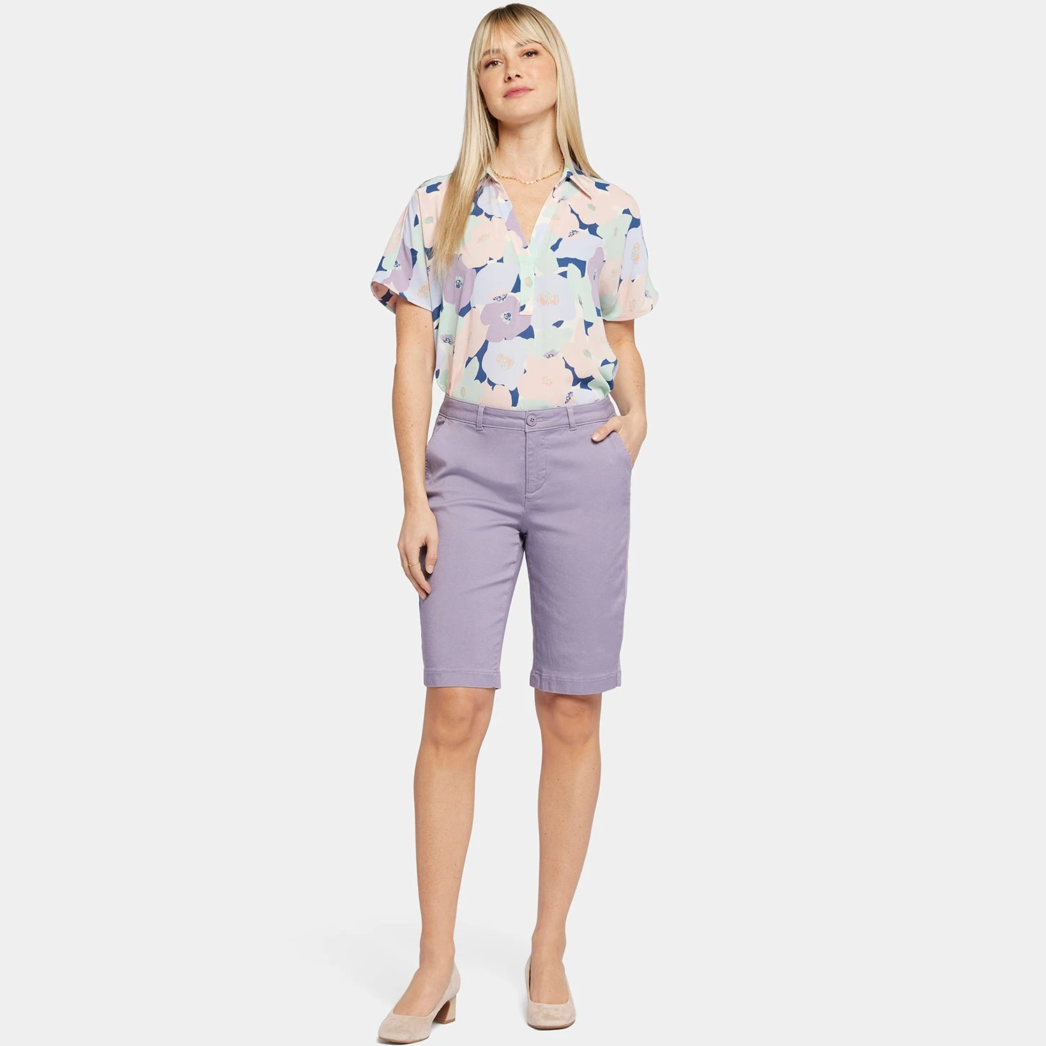 Look and feel good from day to night in the Bermuda Shorts by NYDJ. Soft stretch twill provides a comfortable yet polished look, while our signature Lift Tuck® Technology slims from within. This classic warm-weather style features four-pocket styling and a zip fly with button closure. This short is made with earth-friendly methods that result in reduced consumption of water, chemicals and/or energy.