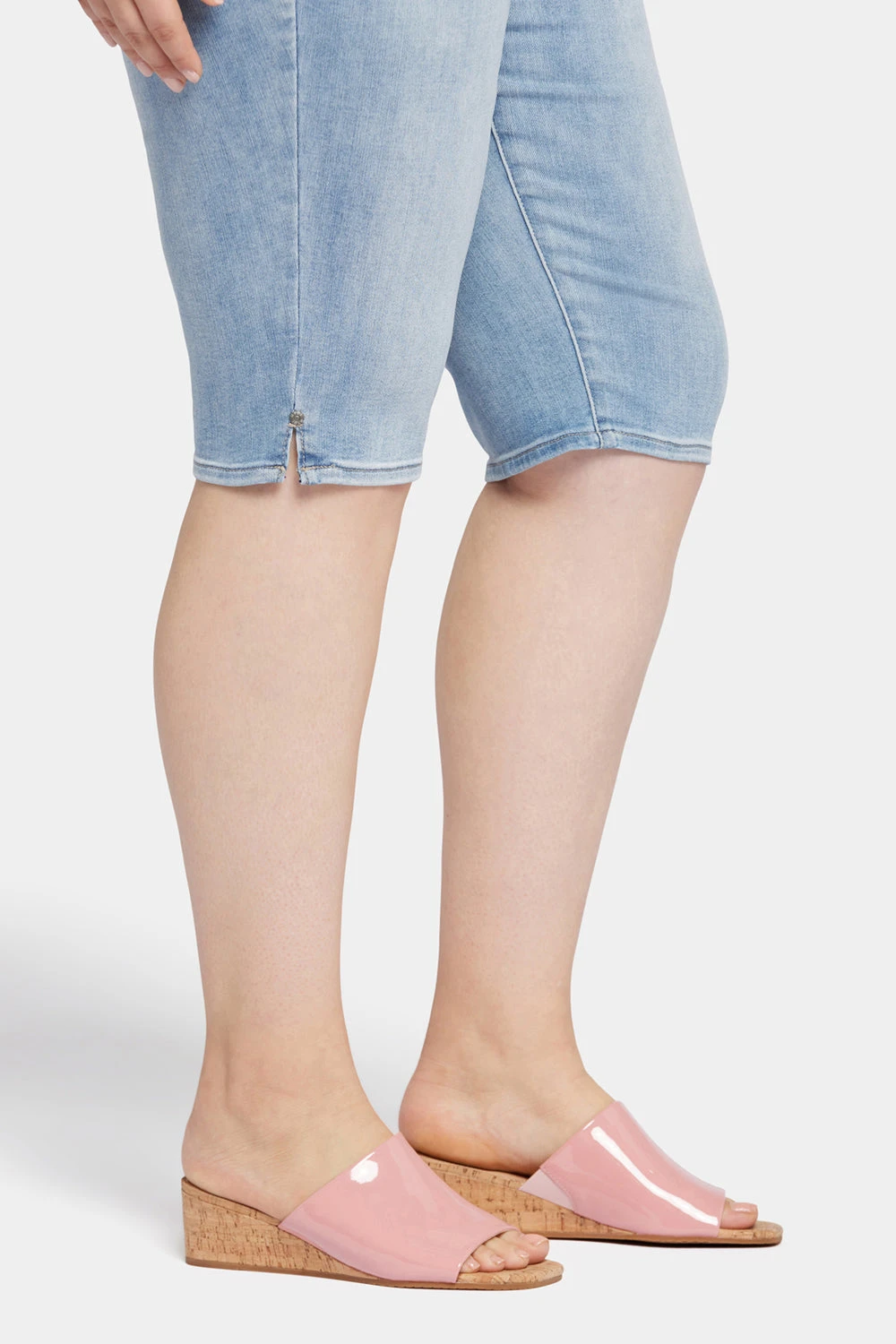 In a chic warm-weather length with a little more coverage than shorts, NYDJ’s Bike Capri Jeans in Plus Size with Riveted Side Slits have a sleek fit designed to hit at the knee. Side hem slits accented by rivets add stylish edge and greater ease of movement to the classic silhouette. Making these capris extra flattering, our Lift Tuck® Technology uses a proprietary slimming panel with a patented criss-cross design to shape and support your curves. Finished with five-pocket styling, zip fly and button closure.