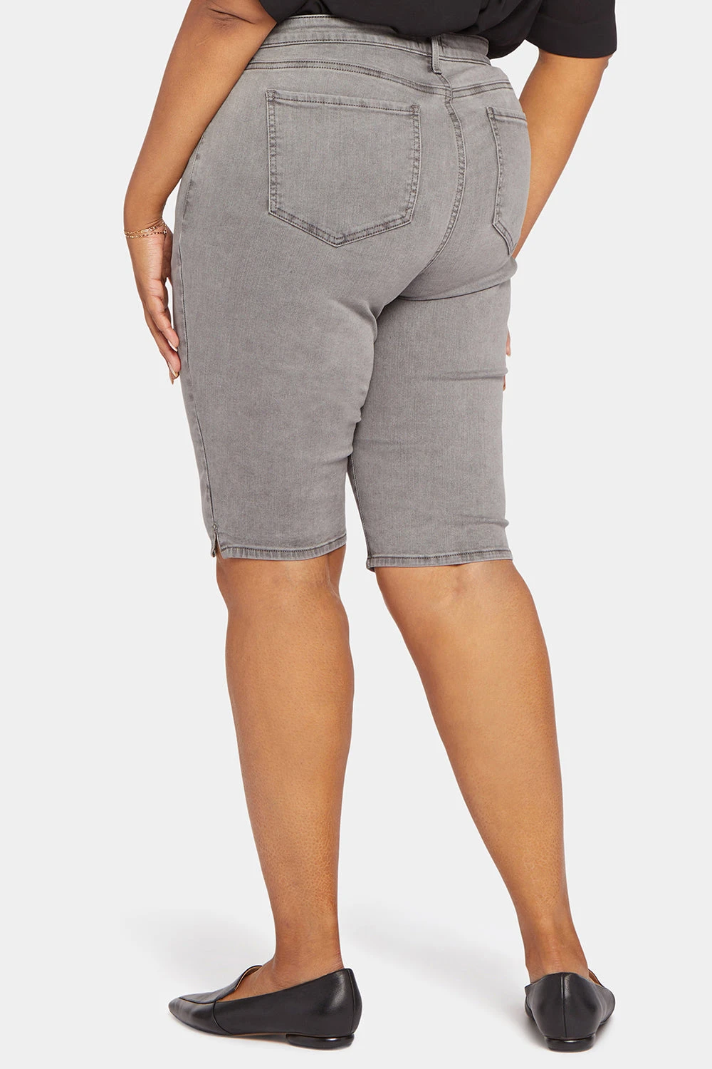 In a chic warm-weather length with a little more coverage than shorts, NYDJ’s Bike Capri Jeans in Plus Size with Riveted Side Slits have a sleek fit designed to hit at the knee. Side hem slits accented by rivets add stylish edge and greater ease of movement to the classic silhouette. Making these capris extra flattering, our Lift Tuck® Technology uses a proprietary slimming panel with a patented criss-cross design to shape and support your curves. Finished with five-pocket styling, zip fly and button closure.