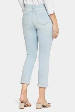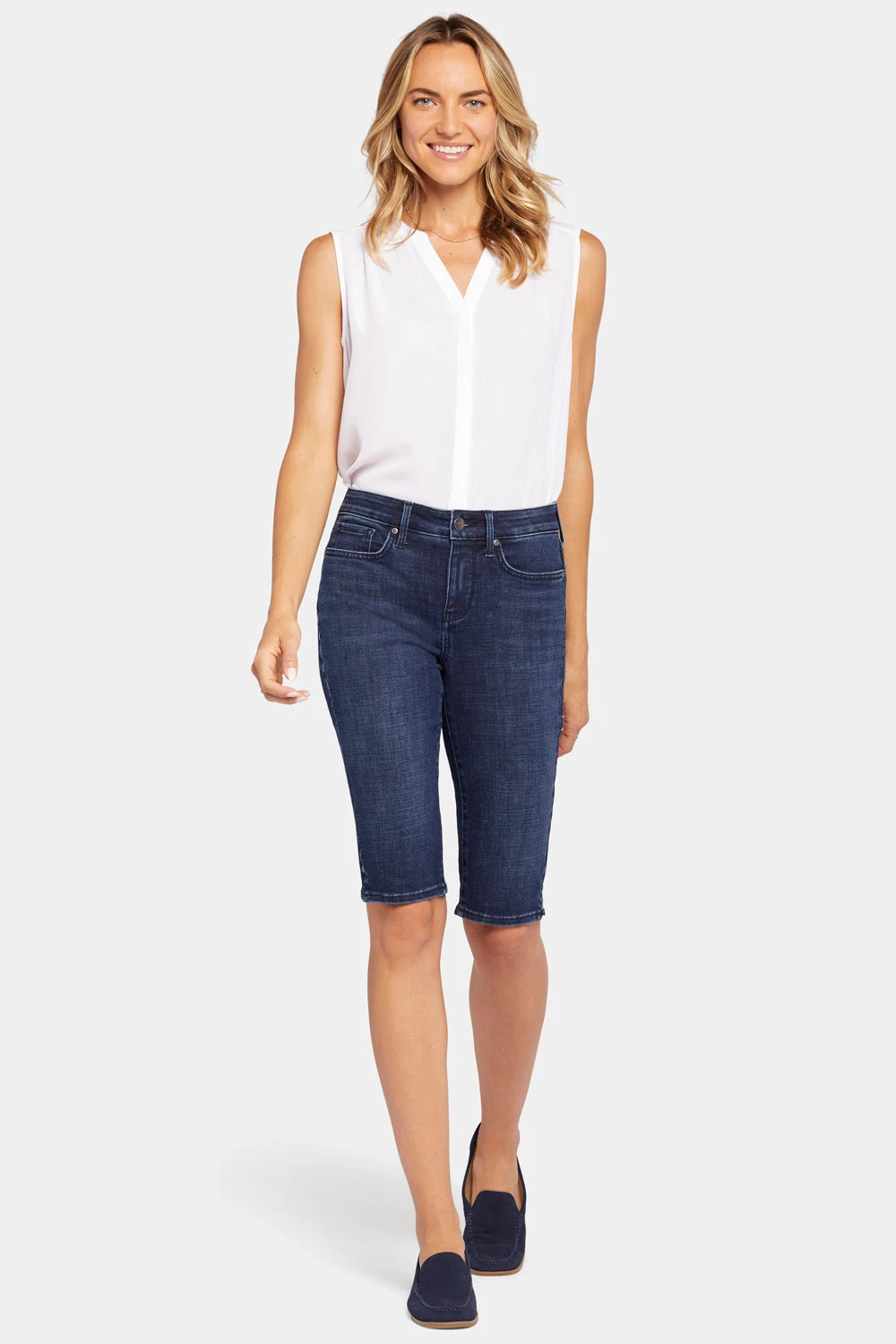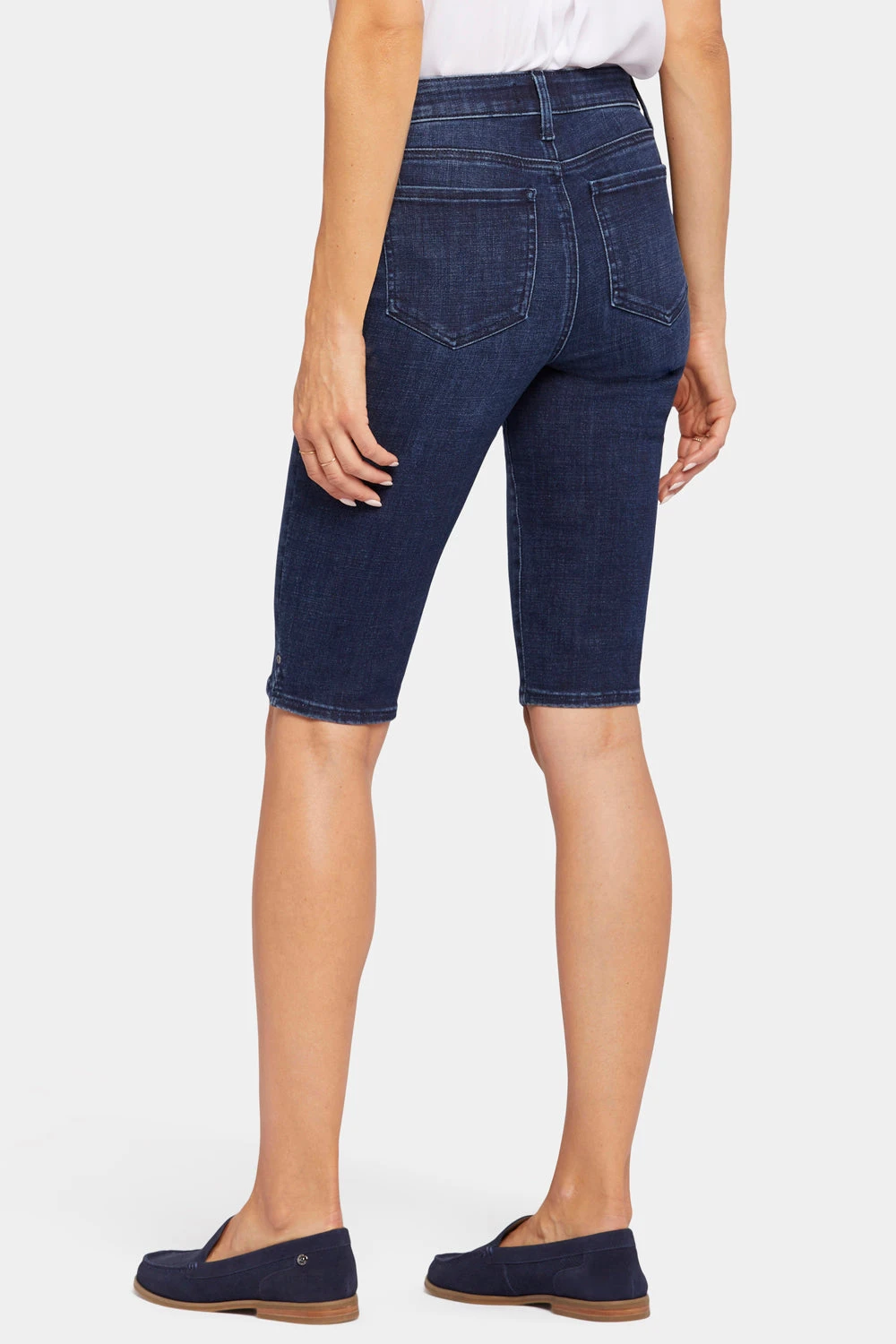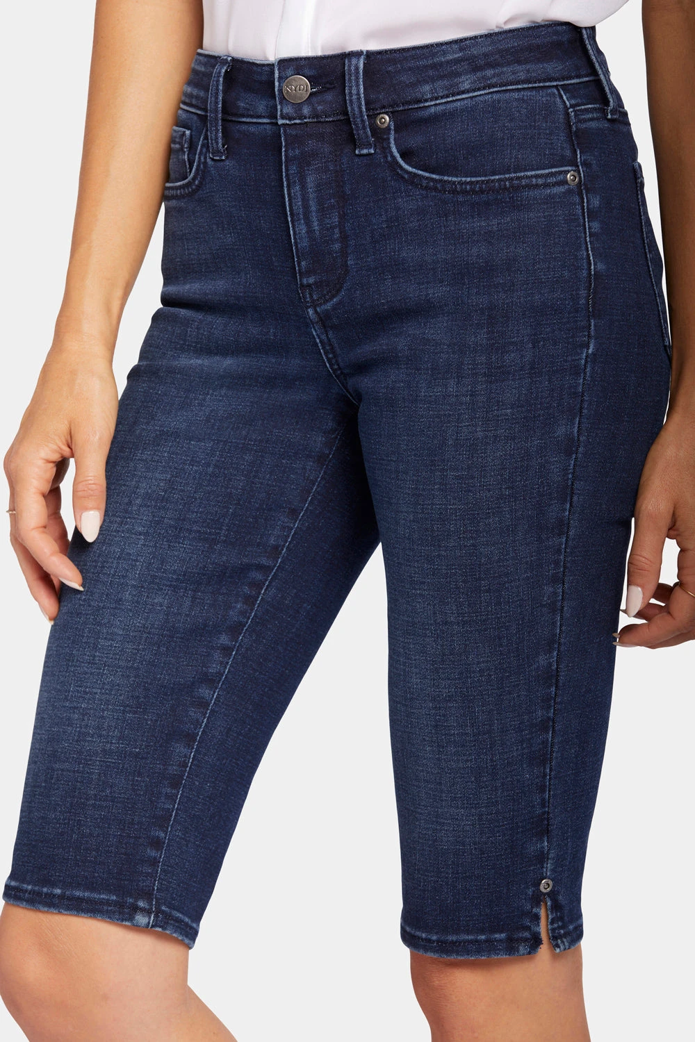 In a chic warm-weather length with a little more coverage than shorts, NYDJ’s Bike Capri Jeans with Riveted Side Slits have a sleek fit designed to hit at the knee. Side hem slits accented by rivets add stylish edge and greater ease of movement to the classic silhouette. Making these capris extra flattering, our Lift Tuck® Technology uses a proprietary slimming panel with a patented criss-cross design to shape and support your curves. Finished with five-pocket styling, zip fly and button closure.