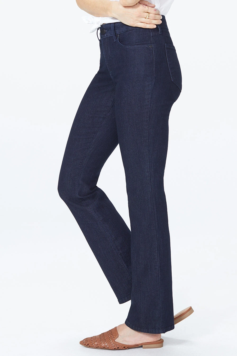 Some call it flawless. At NYDJ, we call it the Billie Mini Bootcut Women’s Jeans. Our latest bootcut style features a slightly narrower leg opening for a refined, yet relaxed, look. Lift Tuck® Technology uses a proprietary slimming panel with a patented criss-cross design for comfortable compression that instantly smooths and shapes, so you look and feel one size smaller. Features classic five-pocket styling, a zip fly and button closure.