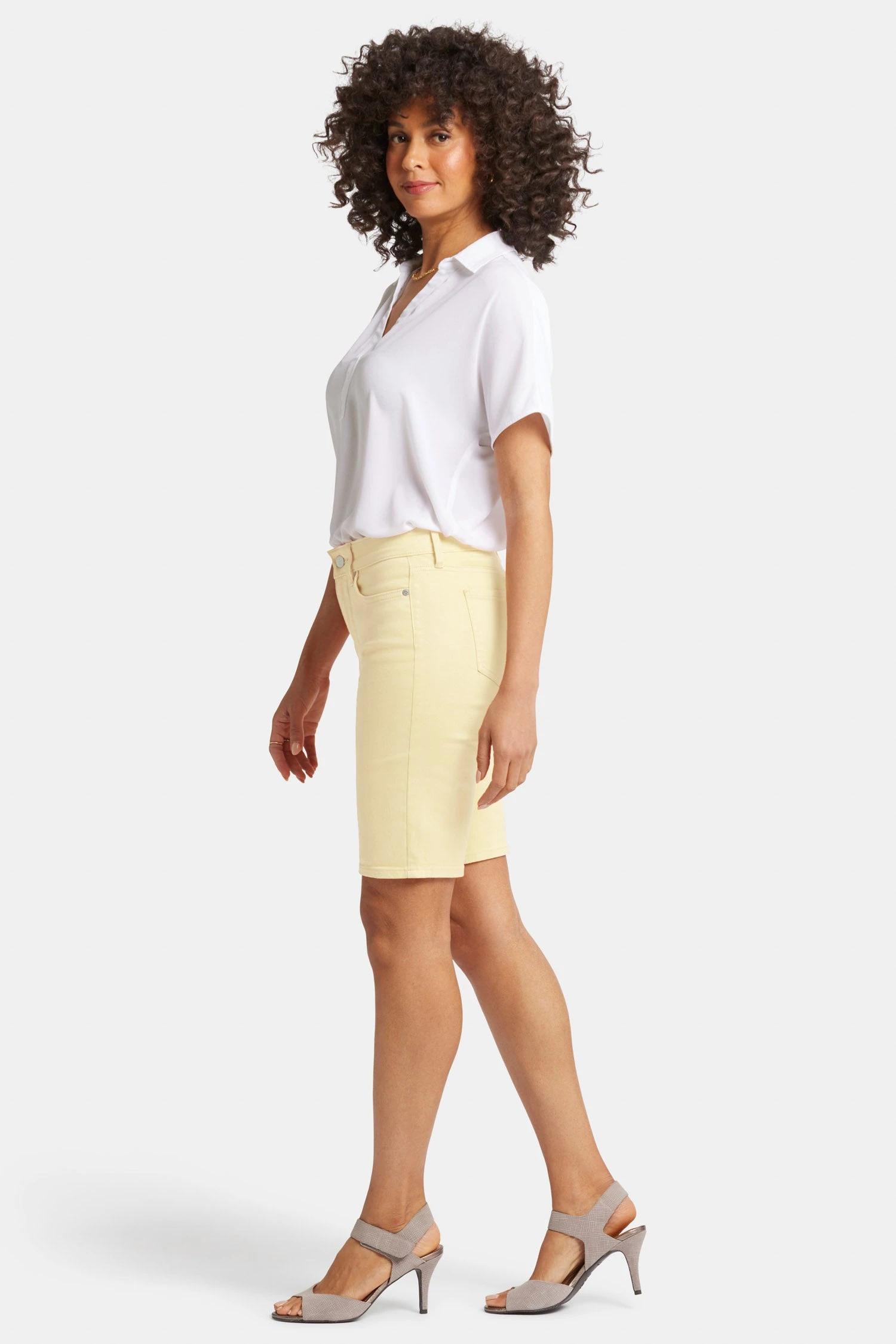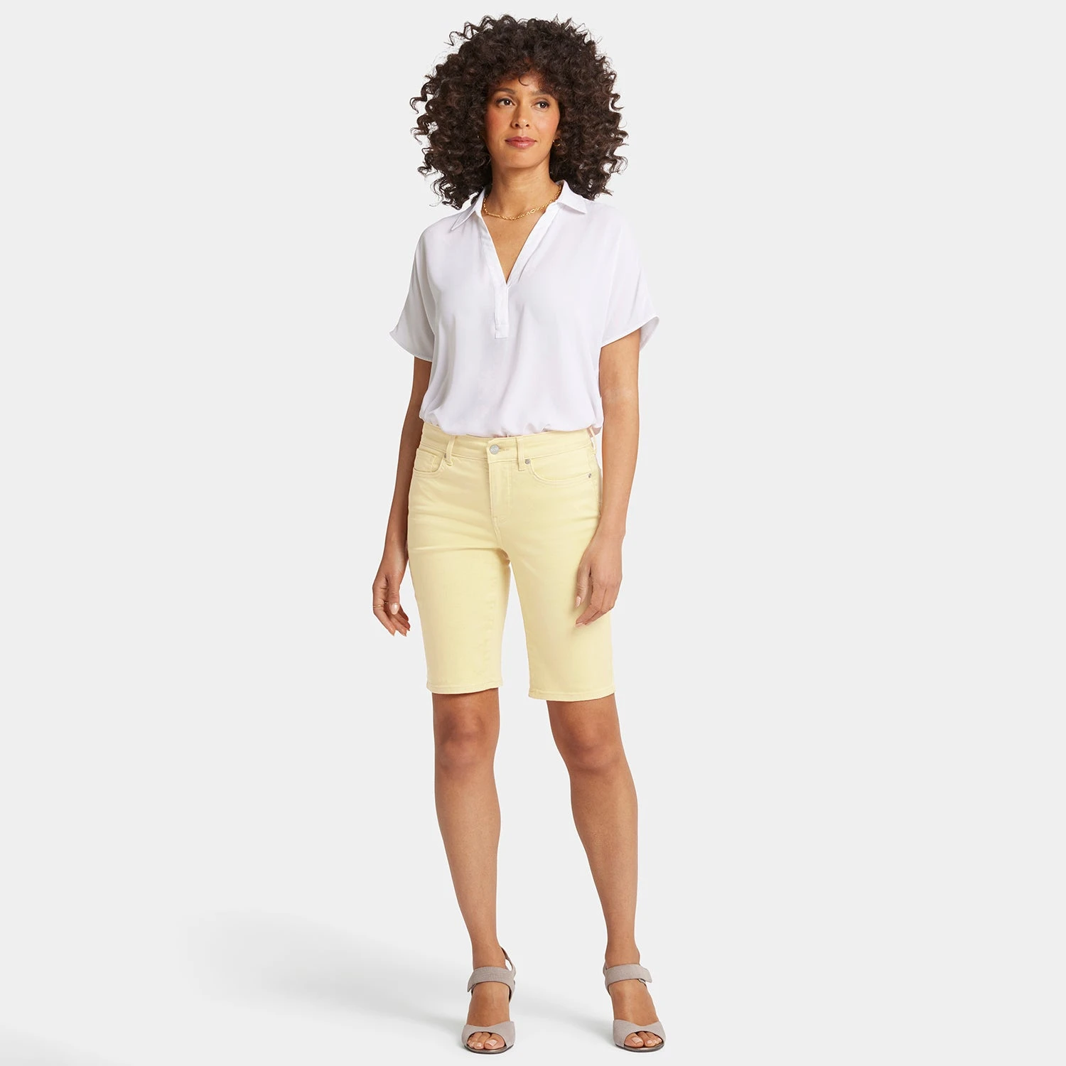 Bask in the sunshine and the compliments you’ll receive in NYDJ’s Briella 11 Inch Denim Shorts. A longer inseam gives you the perfect amount of comfort and coverage for active days. This slimming short features our signature Lift Tuck® Technology for a trimmer figure and sleek profile. Right-size, classic five-pocket styling flatters your curves. Features a zip fly with button closure. This short is made with earth-friendly methods that result in reduced consumption of water, chemicals and/or energy.