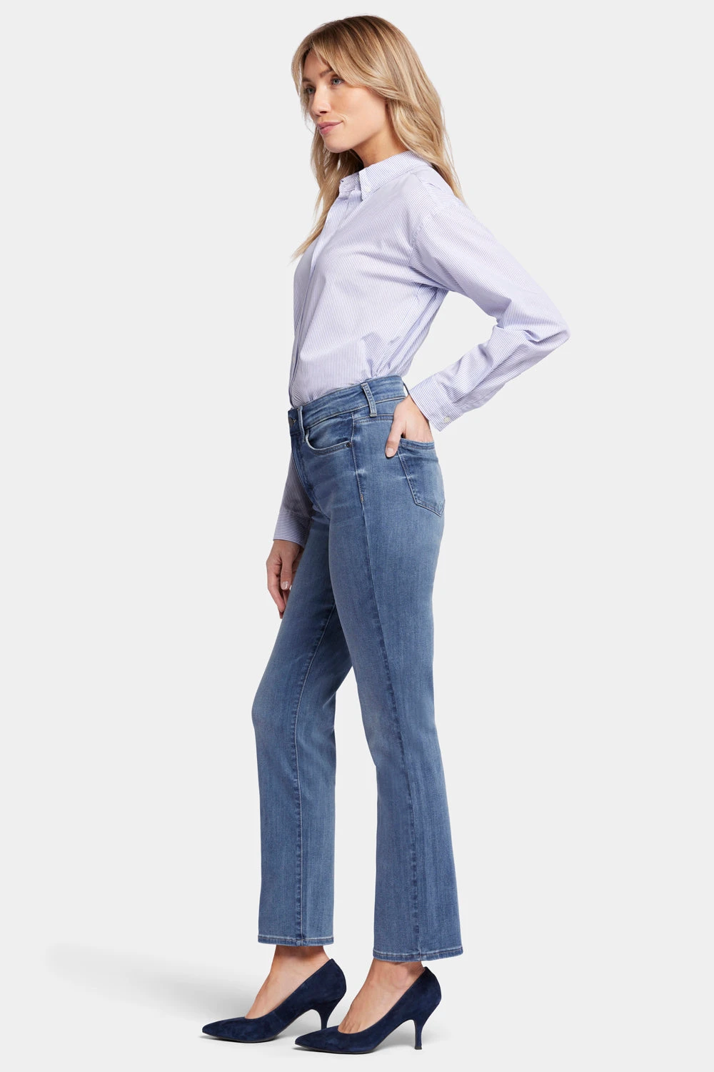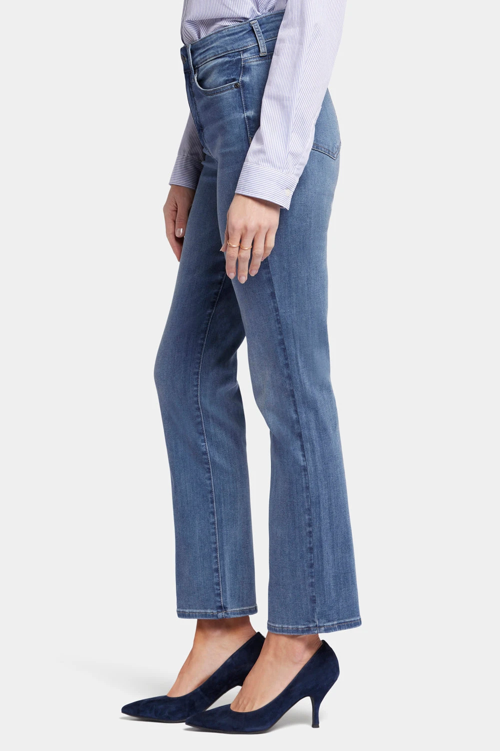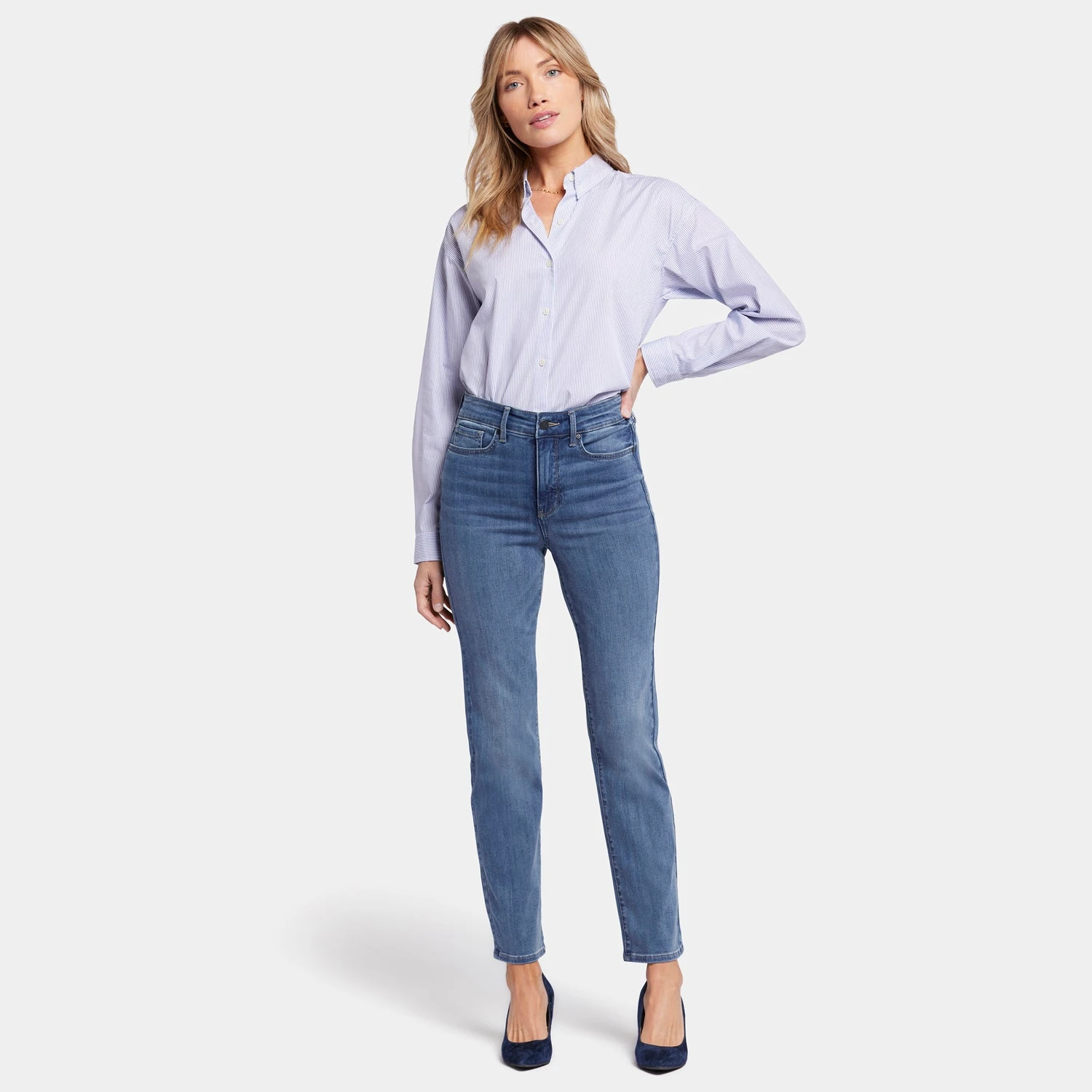Effortlessly chic, NYDJ’s Callie High Straight Jeans have a classic straight-leg fit with a flattering high rise and ankle-grazing hems. Our Lift Tuck® Technology uses a proprietary slimming panel with a patented criss-cross design to shape and support your curves while providing a smoother fit in front. These jeans are also made with Sure Stretch® denim technology to give you full range of movement and serious comfort. Finished with a zip fly and button closure and five-pocket styling. This jean is made with earth-friendly methods that result in reduced consumption of water, chemicals and/or energy.