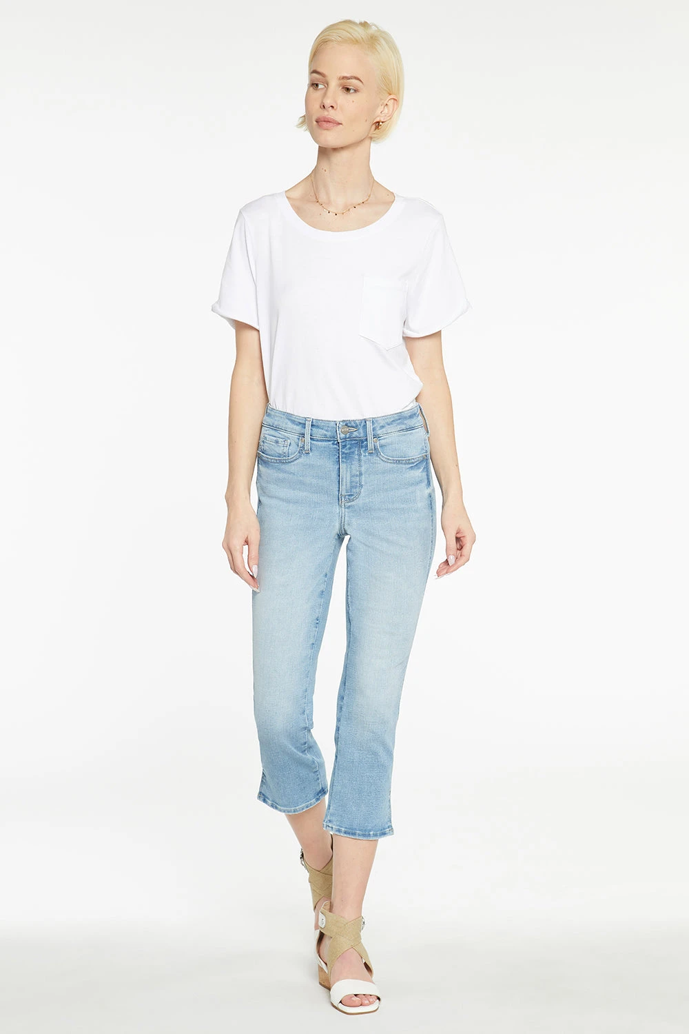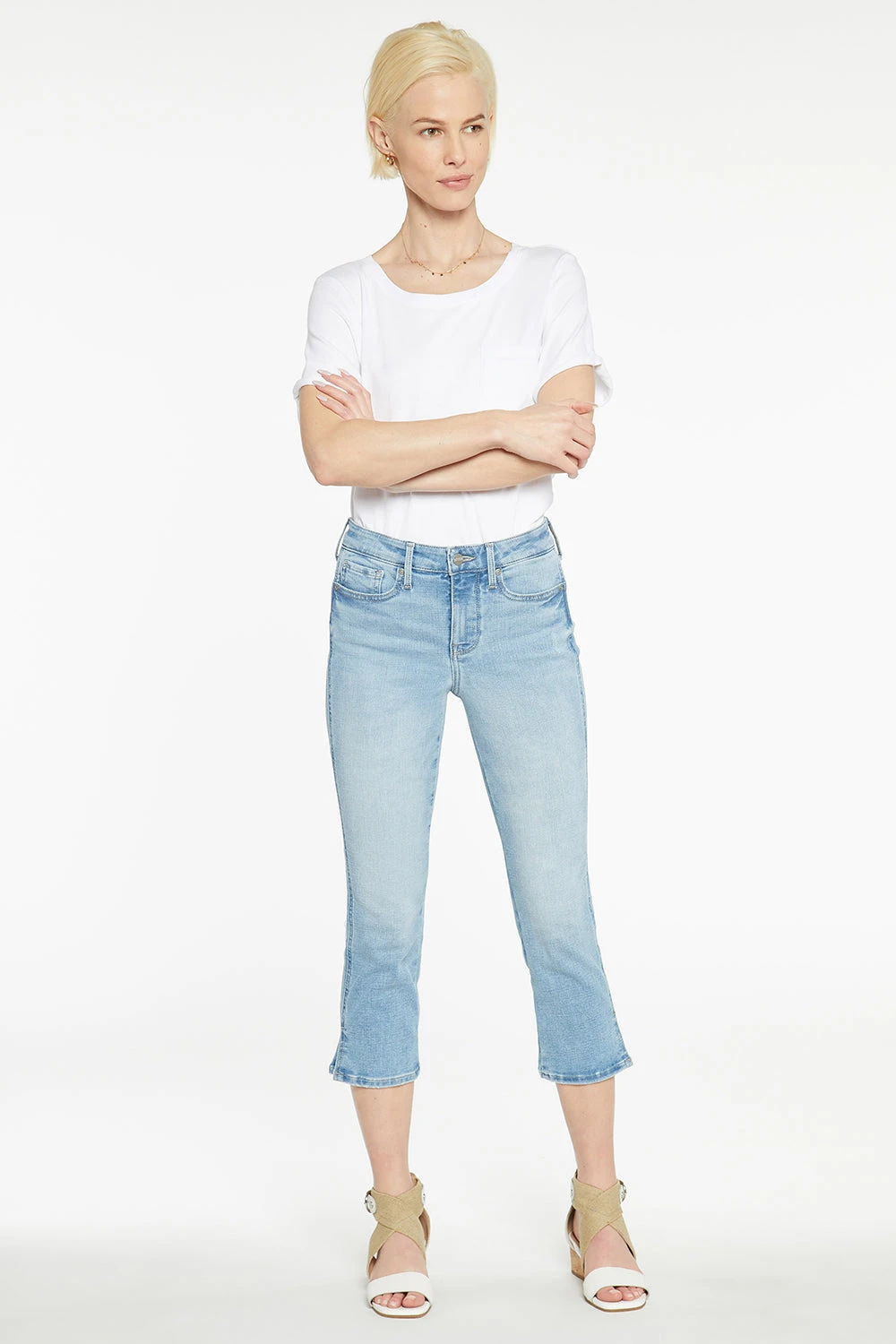 No closet is complete without the Chloe Capri Jeans by NYDJ. A slightly cropped length is the perfect complement to a trim-looking silhouette that flatters from every angle. NYDJ’s signature Lift Tuck® Technology uses a proprietary slimming panel with a patented criss-cross design to give a smoother appearance. Features classic five-pocket styling, a zip fly with button closure and side slits at the hems. This jean is made with earth-friendly methods that result in reduced consumption of water, chemicals and/or energy.