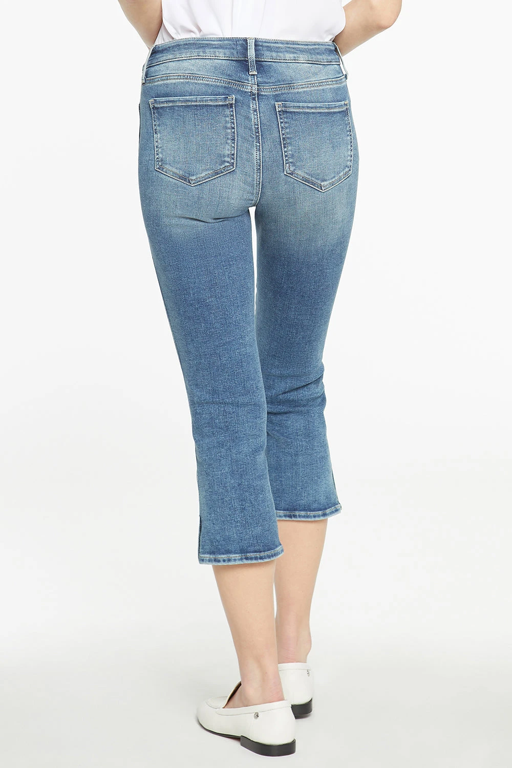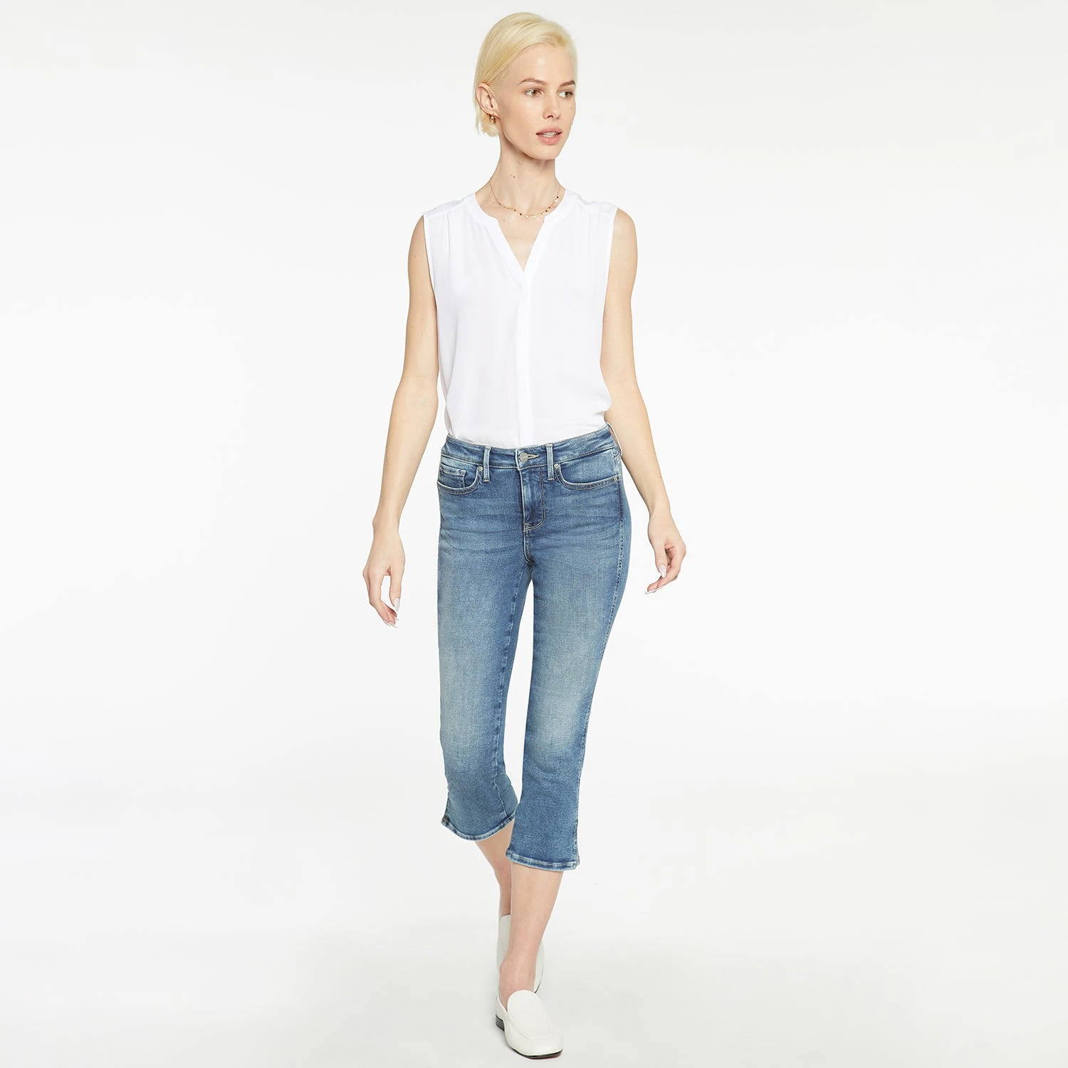 No closet is complete without the Chloe Capri Jeans by NYDJ. A slightly cropped length is the perfect complement to a trim-looking silhouette that flatters from every angle. NYDJ’s signature Lift Tuck® Technology uses a proprietary slimming panel with a patented criss-cross design to give a smoother appearance. Features classic five-pocket styling, a zip fly with button closure and side slits at the hems.