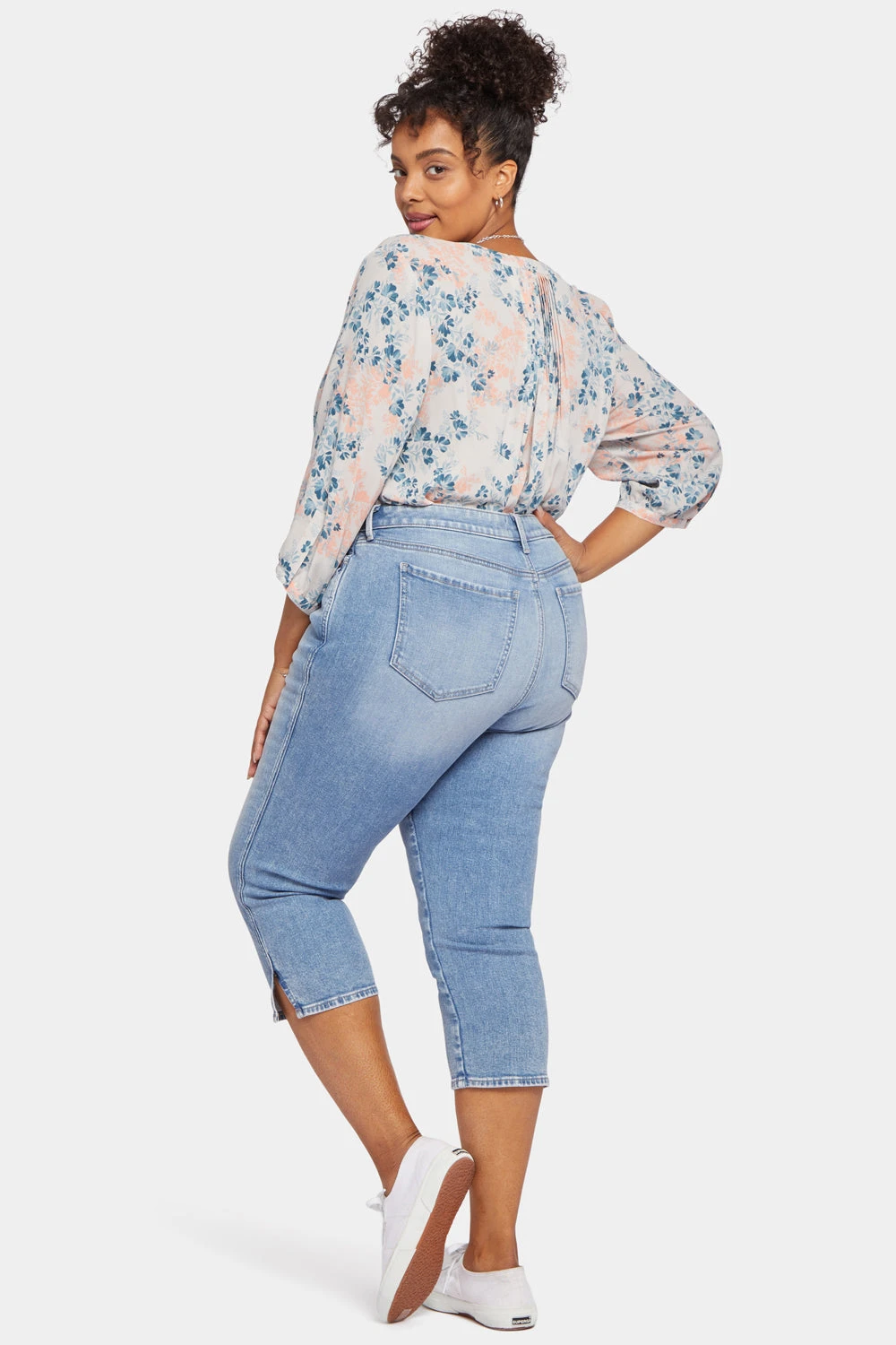 No closet is complete without the Chloe Capri Jeans by NYDJ. A slightly cropped length is the perfect complement to a trim-looking silhouette that flatters from every angle. NYDJ’s signature Lift Tuck® Technology uses a proprietary slimming panel with a patented criss-cross design to give a smoother appearance. Features classic five-pocket styling, a zip fly with button closure and side slits at the hems. Our Quinta wash features light distressing on the front and back pocket edges as well as a pebbled treatment that results in a slightly unique look for each jean. This jean is made with earth-friendly methods that result in reduced consumption of water, chemicals and/or energy.