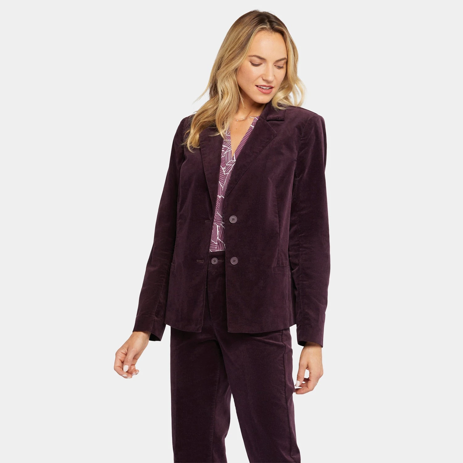 NYDJ’s Classic Blazer Jacket in Velveteen is the fashionable foundation you need for an endless number of looks. A double-button closure, seamed front and welt pockets lend sophistication to this staple of every woman’s wardrobe.
