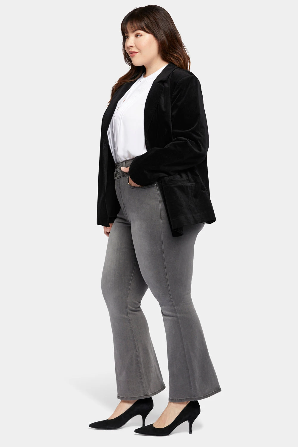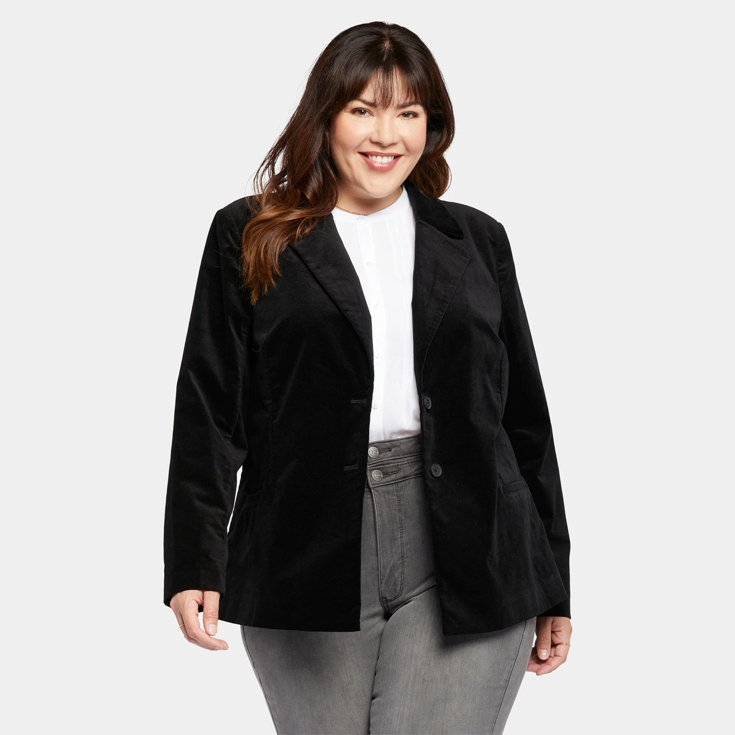 NYDJ’s plush Classic Blazer Jacket in Plus Size in Velveteen is the fashionable foundation you need for an endless number of looks. A double-button closure, seamed front and welt pockets lend sophistication to this staple of every woman’s wardrobe.