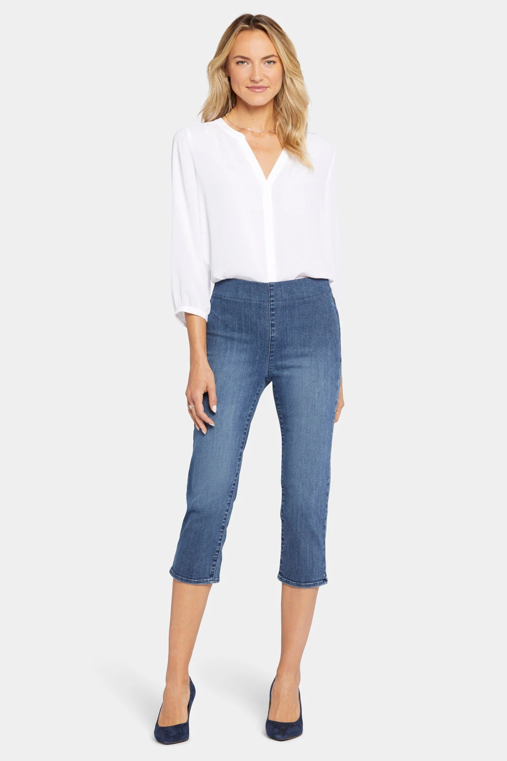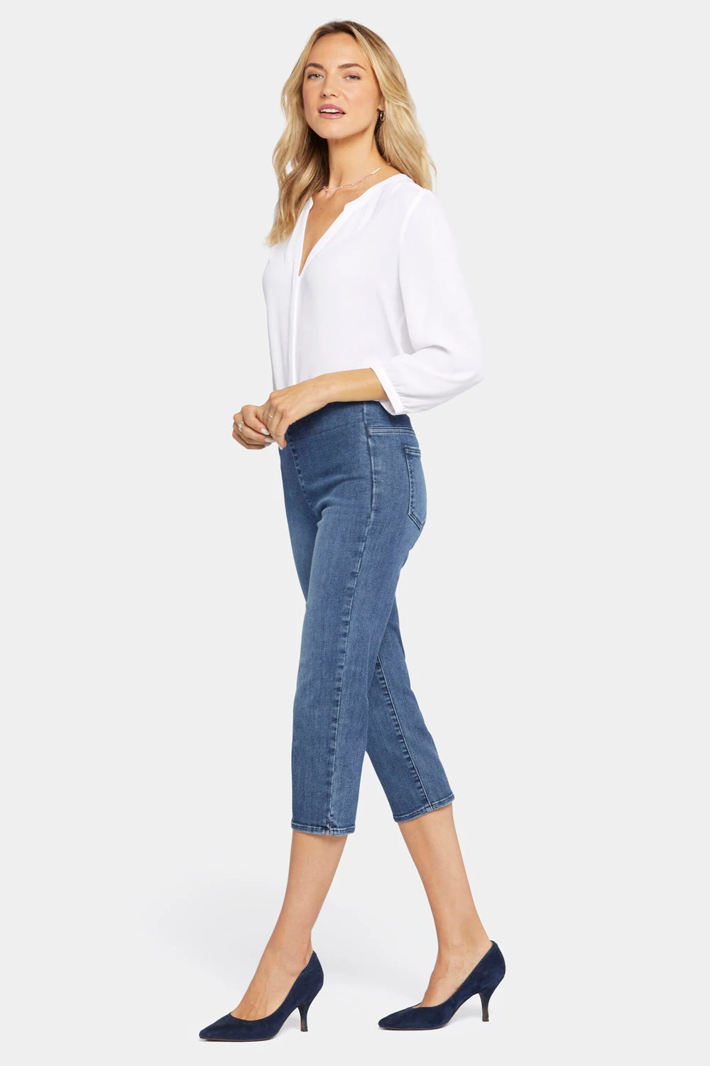 No one’s body stays the same size forever, so why do your jeans have to? Made from our most expandable denim, which stretches up to three sizes and recovers with ease to its original shape, the NYDJ Dakota Crop Pull-On Jeans in SpanSpring™ Denim adapt to you and not the other way around. They’re also super flattering thanks to our signature Lift Tuck® Technology, which uses a proprietary hidden front panel with a patented criss-cross design to smooth and support your curves. This effortless summer style falls to a verstaile cropped length that pairs well with flats or heels. Finished with functional back pockets, side hem slits and a pull-on waistband for maximum comfort and ease of wear.