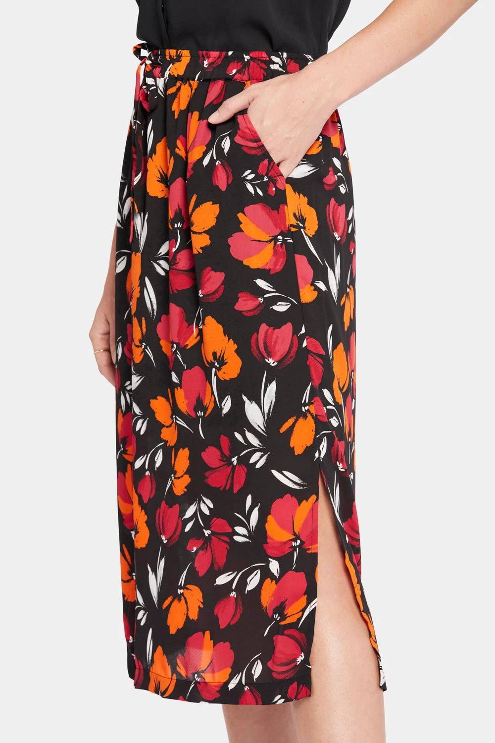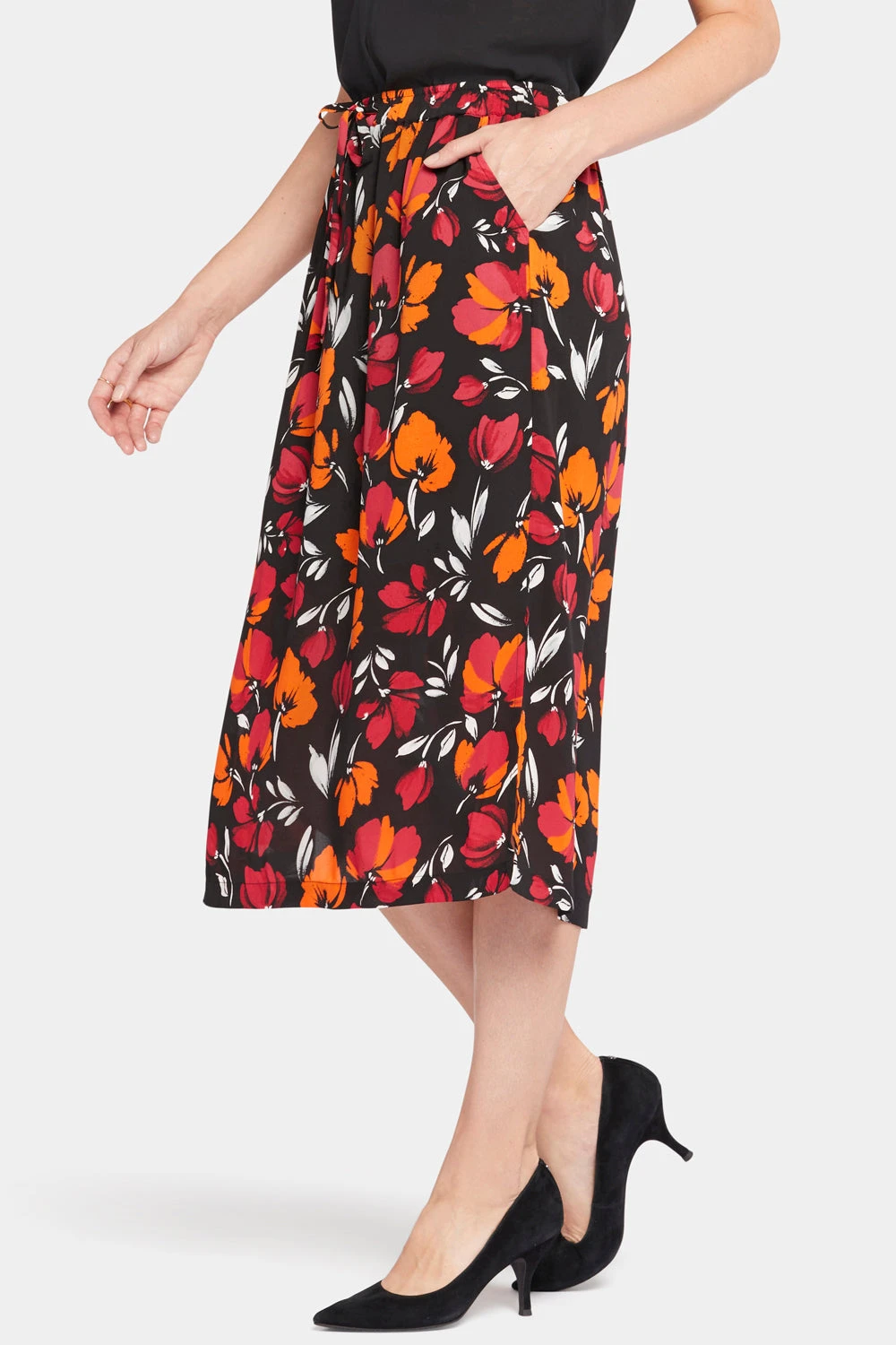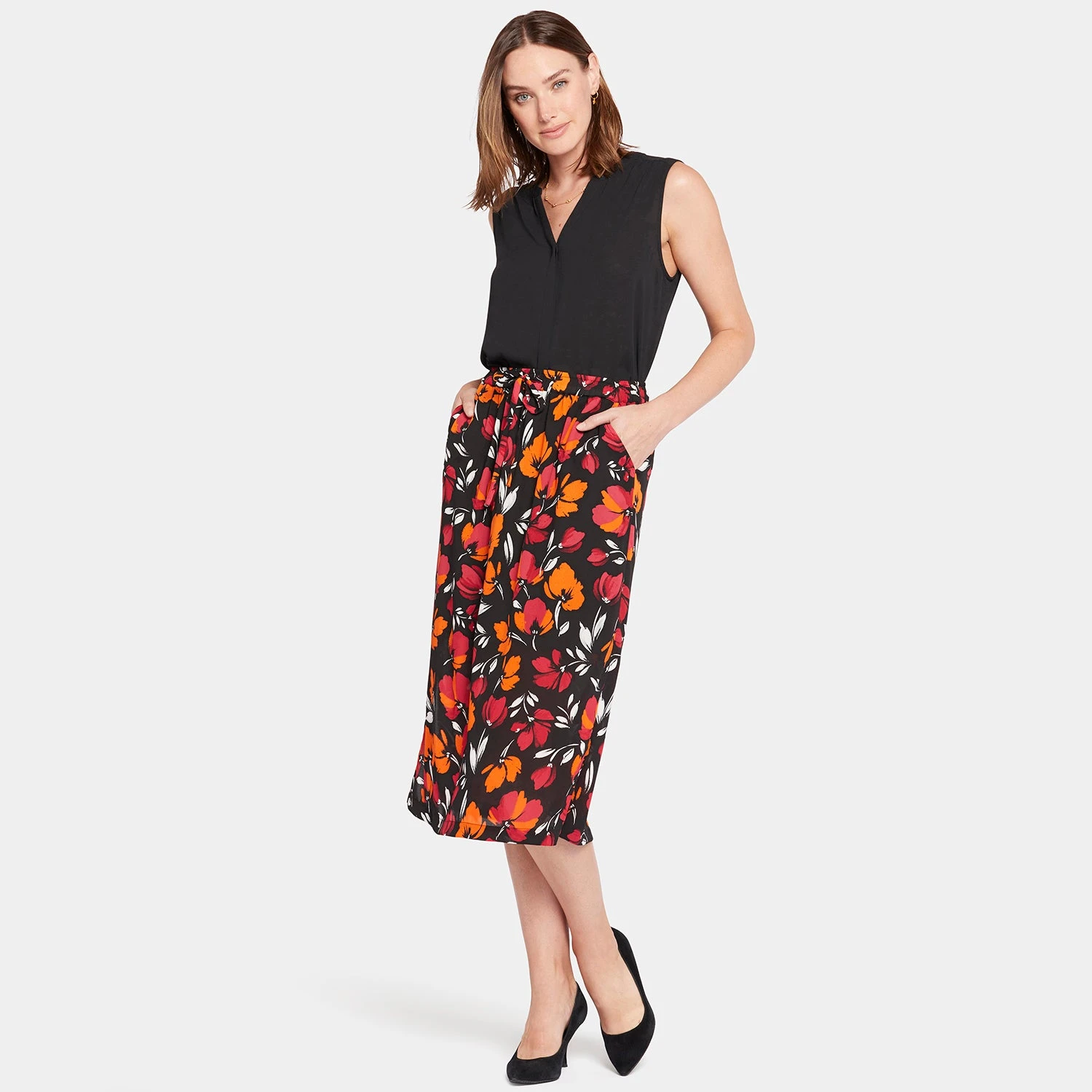 Whether you’re running errands or out with friends, NYDJ’s Drawstring Midi Skirt will keep you looking chic. This skirt is designed in a longer midi length that pairs equally well with heels or sneakers. Finished with slanted front pockets, pull-on styling and a drawstring tie waist. This skirt is made with a sustainable polyester fiber created from 100% post-consumer plastic waste, resulting in less water and energy use and fewer greenhouse gas emissions without changing the look and feel of the fabric.Â