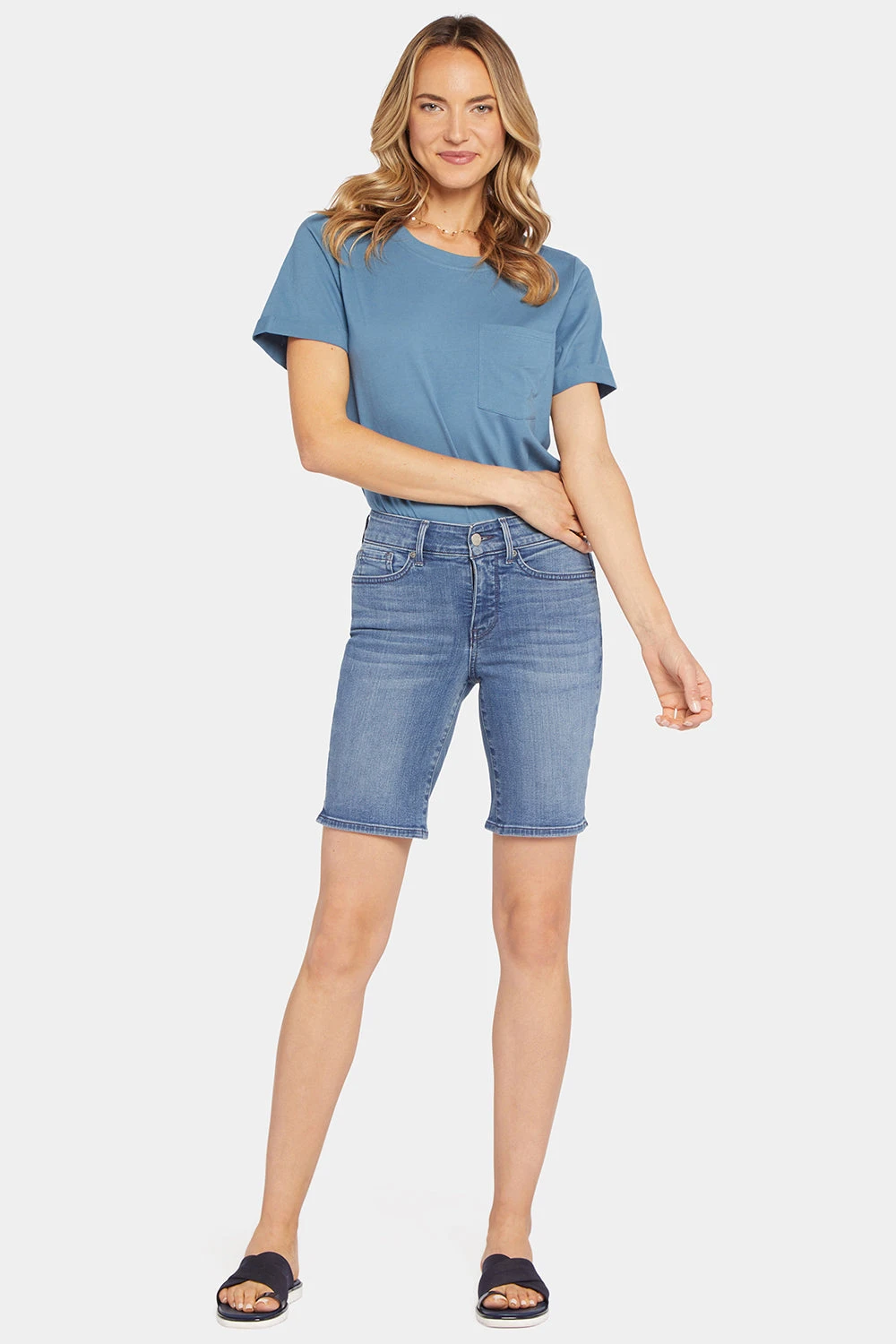 Keep your hemlines short and your days long! NYDJ’s Ella Denim Shorts in Petite with Side Slits are that perfect short you didn’t even know you were searching for, but now you can’t live without. Wear them through all the hottest days and nights and let the compliments roll in. Our Lift Tuck® Technology uses a proprietary slimming panel with a patented criss-cross design to shape and support your curves. Finished with classic five-pocket styling, a zip and button fly and side slits at the hem. Sweetbay is a medium wash that offers an authentic vintage vibe with feathered hand sanding on the front thighs and seat, strong whiskers on the front hips and soft highs and lows along the seams. This short is made with earth-friendly methods that result in reduced consumption of water, chemicals and/or energy.