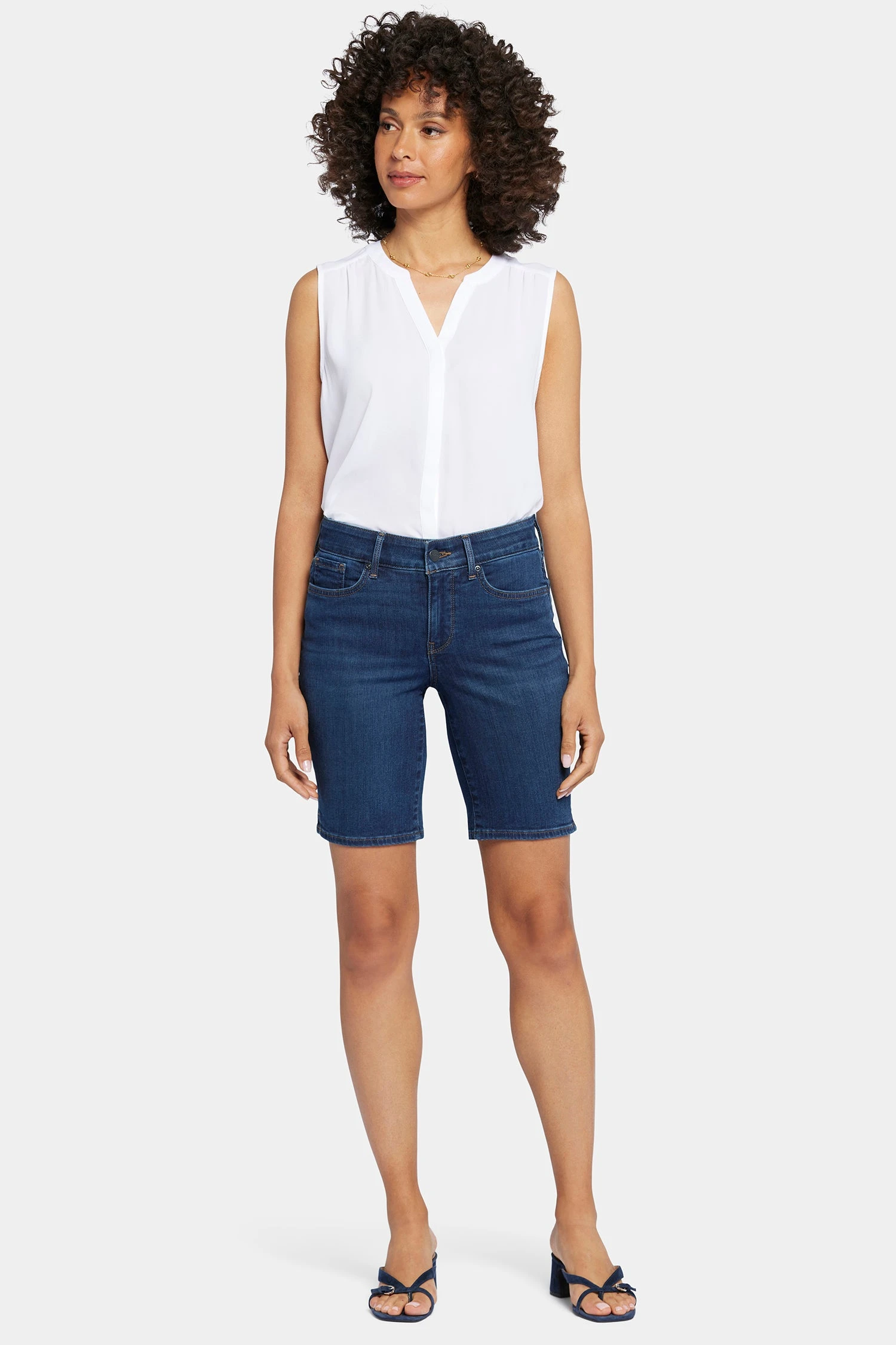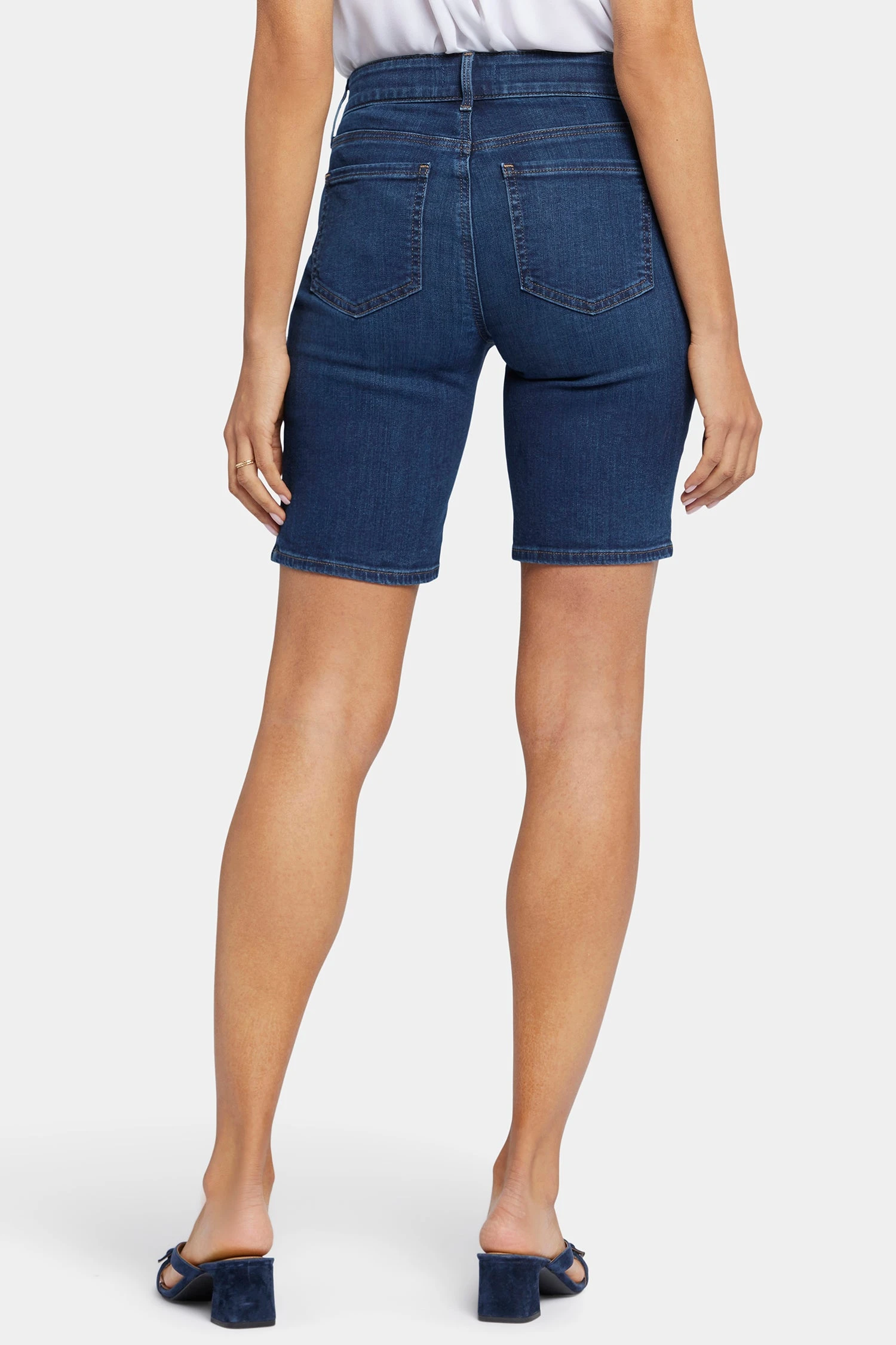 Keep your hemlines short and your days long! NYDJ’s Ella Denim Shorts with Side Slits are that perfect short you didn’t even know you were searching for, but now you can’t live without. Wear them through all the hottest days and nights and let the compliments roll in. Our Lift Tuck® Technology uses a proprietary slimming panel with a patented criss-cross design to shape and support your curves. Finished with classic five-pocket styling, a zip and button fly and side slits at the hem. Palace is a deep, rich dark wash with soft whiskers and hand sanding that is strongest at the knee area, then fades softly up over the thighs. This short is made with earth-friendly methods that result in reduced consumption of water, chemicals and/or energy.