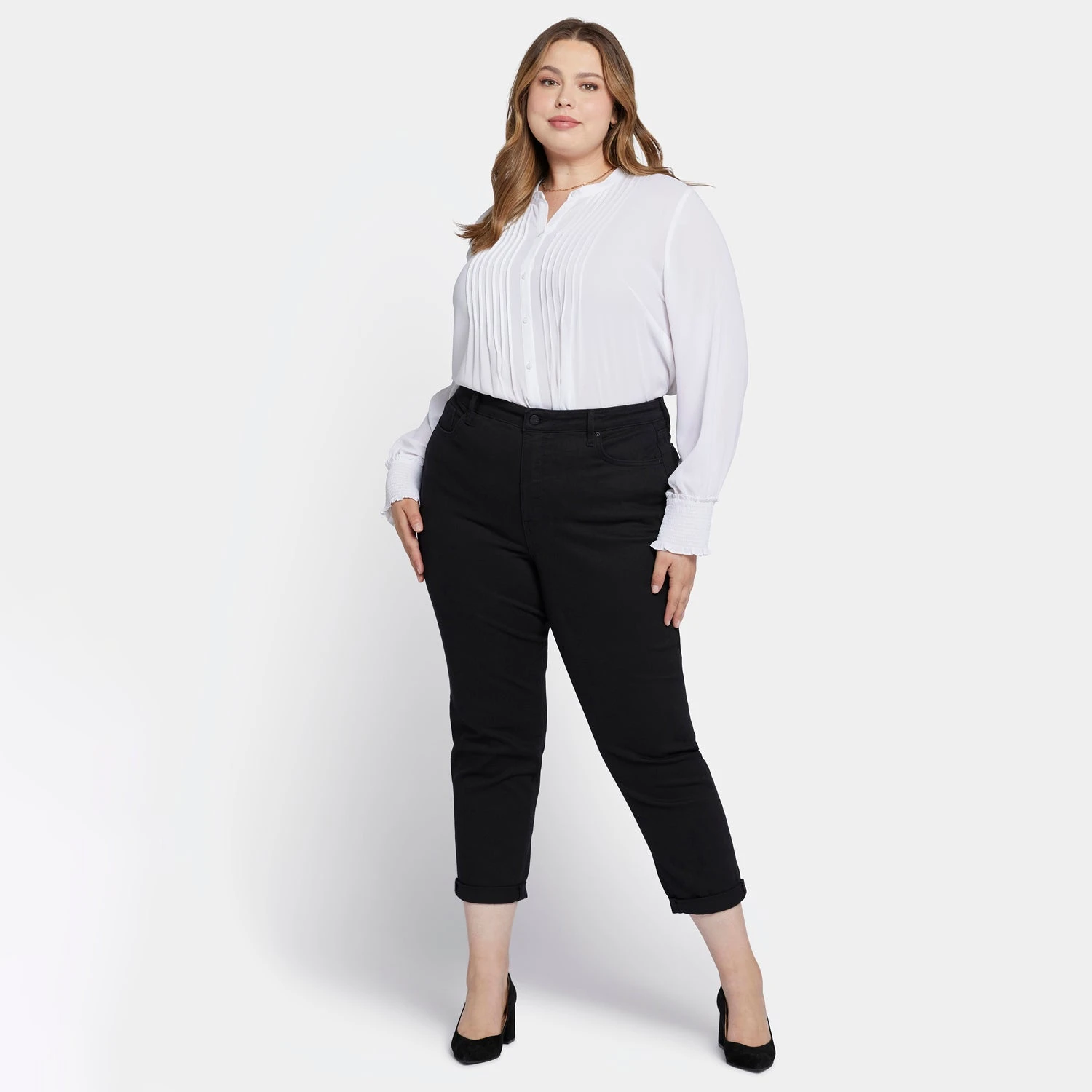 That perfect relaxed fit you’ve been looking for? It’s here, in the Margot Girlfriend Jeans in Plus Size in Cool Embrace® Denim by NYDJ. Their just-slouchy-enough cut is slimmer (and more slimming) than a boyfriend style while maintaining a laid-back looseness through the leg. Cool Embrace® Denim makes rising temperatures a breeze by using best-of-its-kind, moisture-wicking technology to keep you cool and comfortable. Our signature Lift Tuck® Technology makes the fit extra flattering by using a patented criss-cross design inside to shape and support your curves. Features a zip fly with button closure, five-pocket styling and adjustable rolled cuffs. This jean is made with earth-friendly methods that result in reduced consumption of water, chemicals and/or energy.