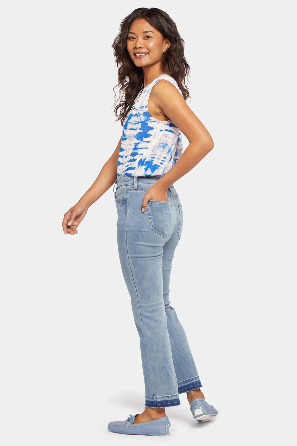 This classic fit can do no wrong. NYDJ’s easy, figure-elongating Marilyn Straight Ankle Jeans in Sure Stretch® Denim with High Rise and Released Hems have a versatile straight-leg silhouette that hits perfectly at the ankle and a higher rise than our original Marilyn Straight Ankle Jeans. Our Sure Stretch® denim technology gives these jeans unparalleled stretch while keeping them in perfect condition, thanks to a high-performance fabric that helps them retain their shape, wear after wear. Our Lift Tuck® Technology uses a proprietary slimming panel with a patented criss-cross design to further shape and support your curves. Finished with classic five-pocket styling, a zip fly with button closure and released hems. Wonderland is a true medium-dark wash with subtle whiskers on the front hips and soft fading on the front thighs, knees and seat. Crystalline is a vintage-inspired light wash with subtle fading all over, whiskers on the front hips and gentle distressing along the pocket edges and hems.