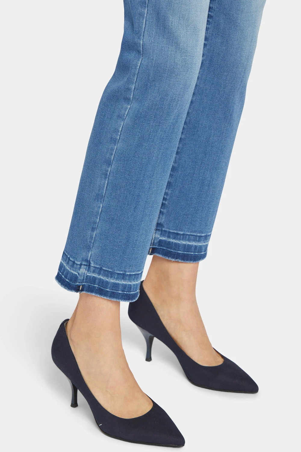This classic fit can do no wrong. NYDJ’s easy, figure-elongating Marilyn Straight Ankle Jeans in Sure Stretch® Denim with High Rise and Released Hems have a versatile straight-leg silhouette that hits perfectly at the ankle and a higher rise than our original Marilyn Straight Ankle Jeans. Our Sure Stretch® denim technology gives these jeans unparalleled stretch while keeping them in perfect condition, thanks to a high-performance fabric that helps them retain their shape, wear after wear. Our Lift Tuck® Technology uses a proprietary slimming panel with a patented criss-cross design to further shape and support your curves. Finished with classic five-pocket styling, a zip fly with button closure and released hems.