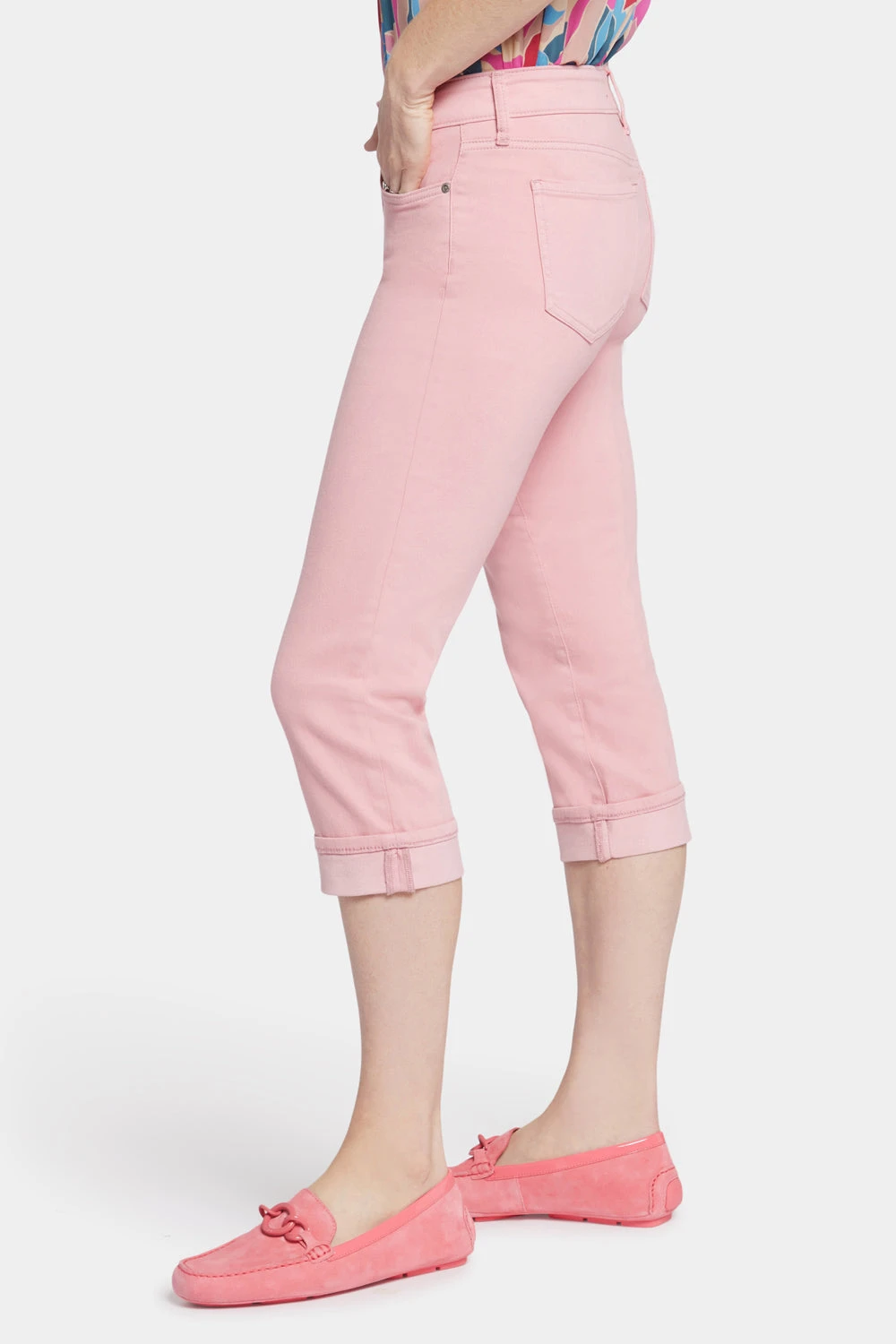 Short and sweet—that’s how we like our warm-weather denim. Meet NYDJ’s Marilyn Straight Crop Jeans in Cool Embrace® Denim, featuring classic five-pocket styling, a zip fly with button closure and a cuffed hem for an extra touch of attitude. Cool Embrace® denim makes rising temperatures a breeze by using best-of-its-kind, moisture-wicking technology to keep you cool and comfortable. Like all NYDJ jeans, this style has our Lift Tuck® Technology, which uses a proprietary slimming panel with a patented criss-cross design to trim your waist. These easy-to-wear, easy-to-love, cropped-length women’s jeans pair perfectly with flats and heels alike.