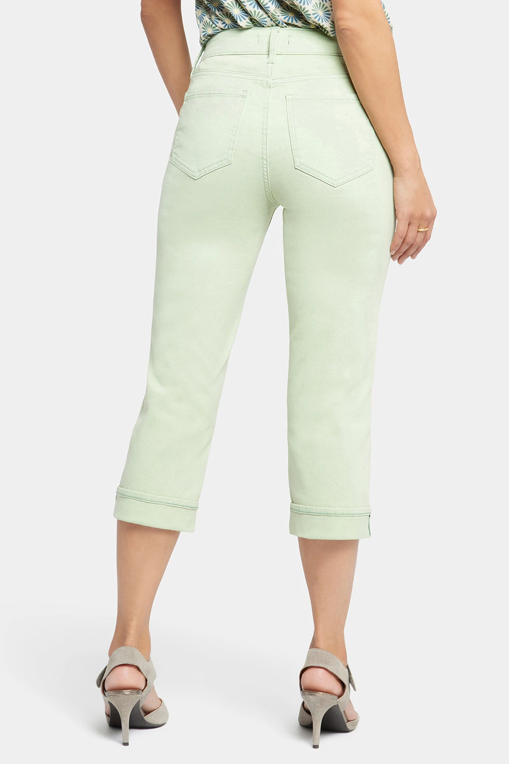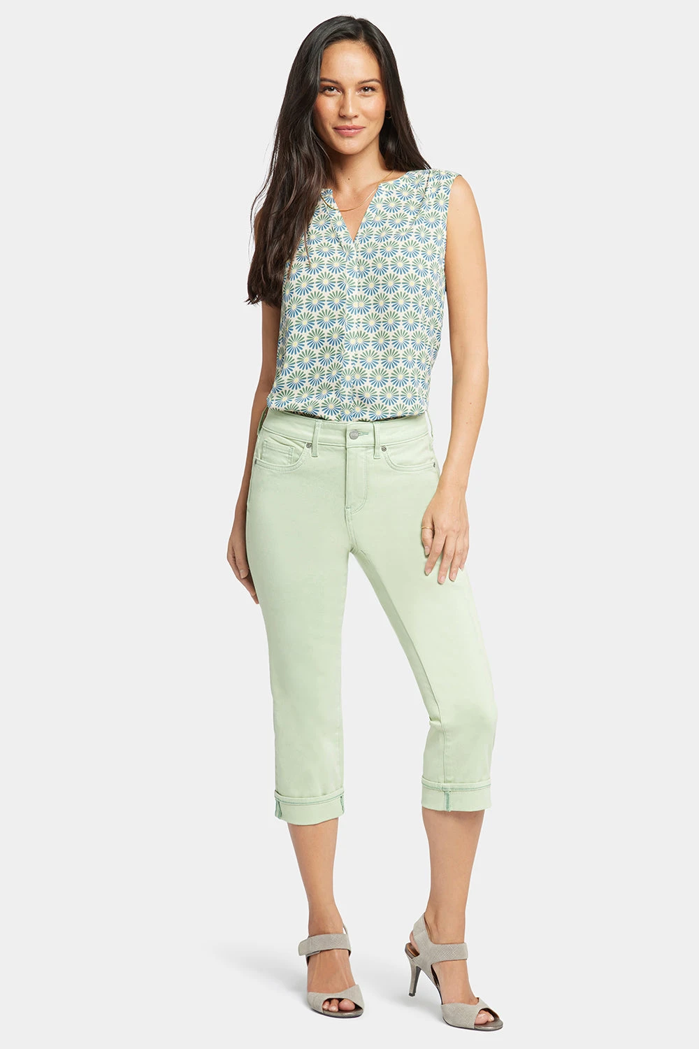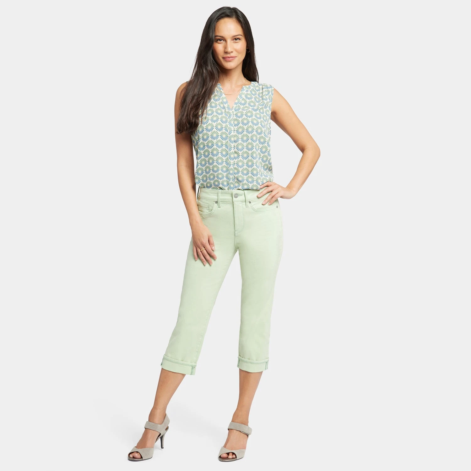 Short and sweet—that’s how we like our warm-weather denim. Meet NYDJ’s Marilyn Straight Crop Jeans with Cuffs featuring classic five-pocket styling, a zip fly with button closure and a cuffed hem for an extra touch of attitude. Like all NYDJ jeans, this style has our Lift Tuck® Technology, which uses a proprietary slimming panel with a patented criss-cross design to trim your waist. These easy-to-wear, easy-to-love, cropped-length women’s jeans pair perfectly with flats and heels alike. This jean is made with earth-friendly methods that result in reduced consumption of water, chemicals and/or energy.