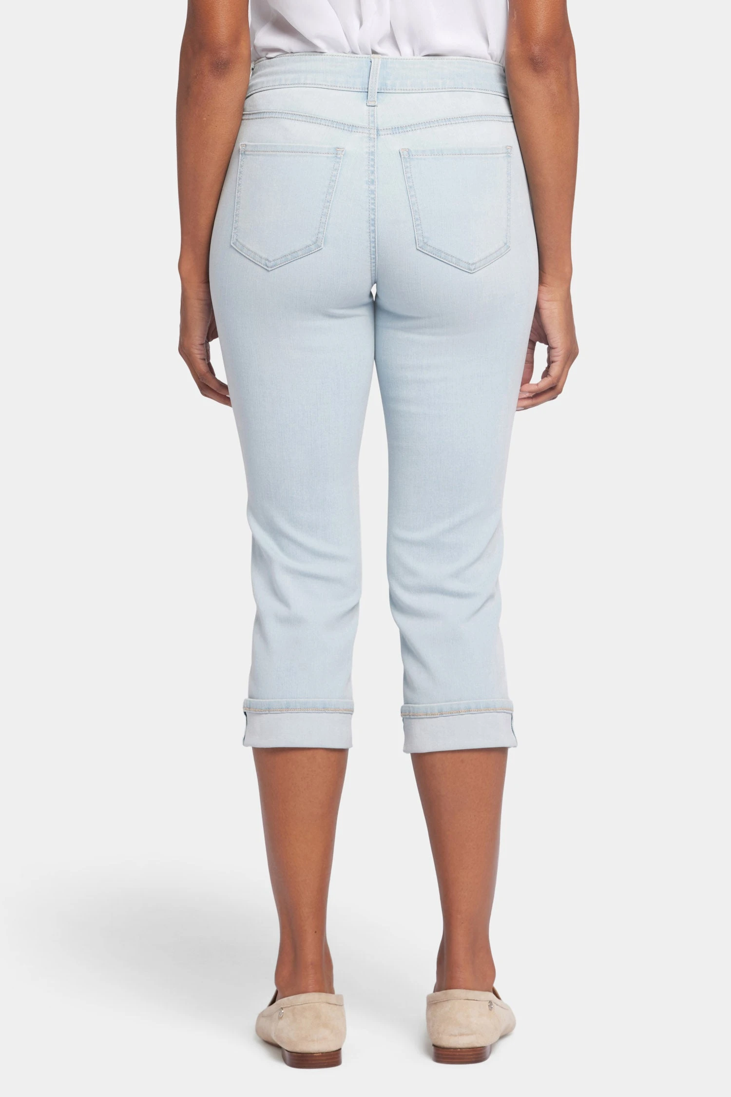 Short and sweet—that’s how we like our warm-weather denim. Meet NYDJ’s Marilyn Straight Crop Jeans in Petite in Cool Embrace® Denim, featuring classic five-pocket styling, a zip fly with button closure and a cuffed hem for an extra touch of attitude.Breathable, temperature-regulating Cool Embrace® Denim keeps you comfortable as the heat rises. Like all NYDJ jeans, this style has our Lift Tuck® Technology, which uses a proprietary slimming panel with a patented criss-cross design to trim your waist. These easy-to-wear, easy-to-love, cropped-length women’s jeans pair perfectly with flats and heels alike. This jean is made with earth-friendly methods that result in reduced consumption of water, chemicals and/or energy.