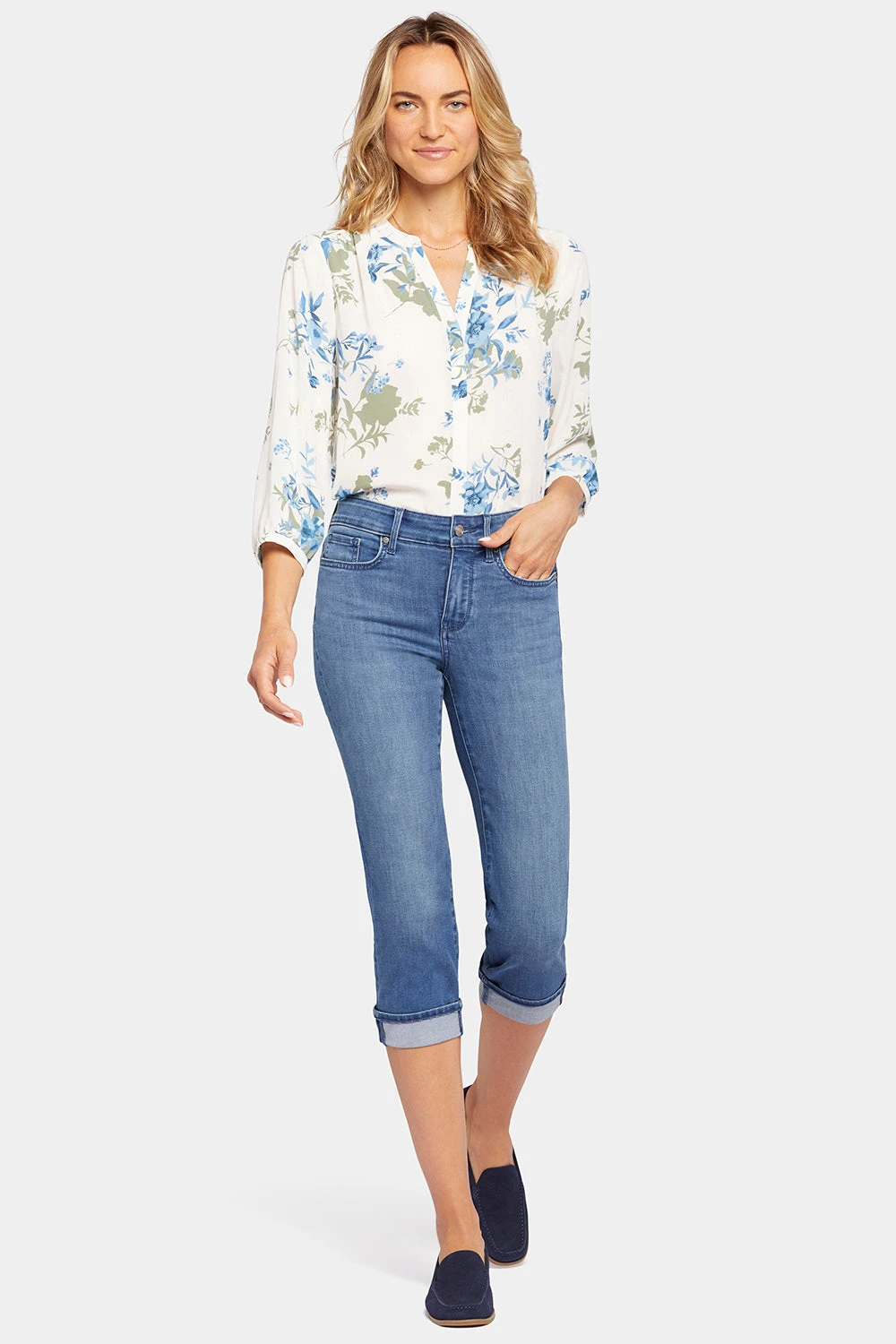 Short and sweet—that’s how we like our warm-weather denim. Meet NYDJ’s Marilyn Straight Crop Jeans in Petite in Cool Embrace® Denim, featuring classic five-pocket styling, a zip fly with button closure and a cuffed hem for an extra touch of attitude. Cool Embrace® denim makes rising temperatures a breeze by using best-of-its-kind, moisture-wicking technology to keep you cool and comfortable. Like all NYDJ jeans, this style has our Lift Tuck® Technology, which uses a proprietary slimming panel with a patented criss-cross design to trim your waist. These easy-to-wear, easy-to-love, cropped-length women’s jeans pair perfectly with flats and heels alike.