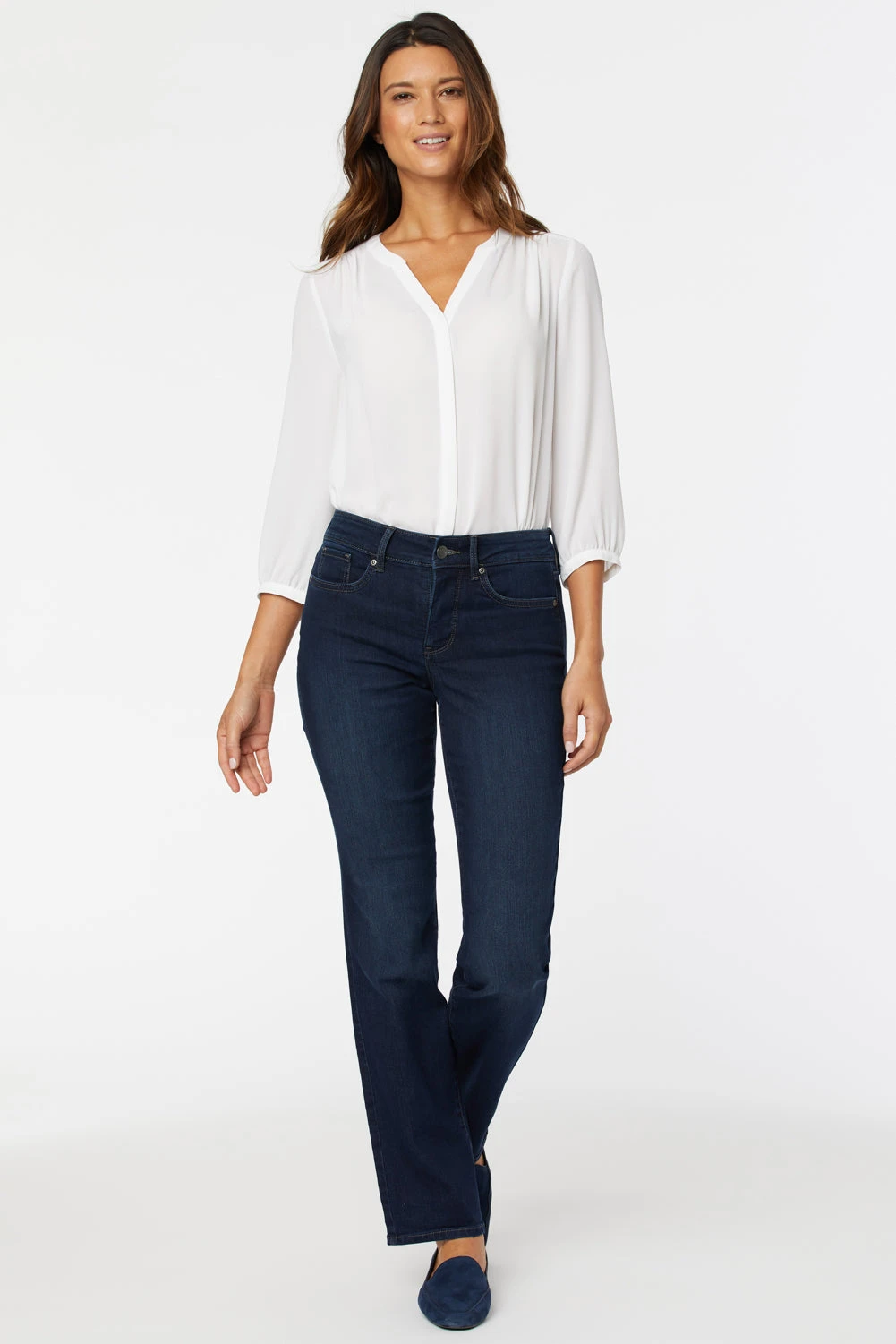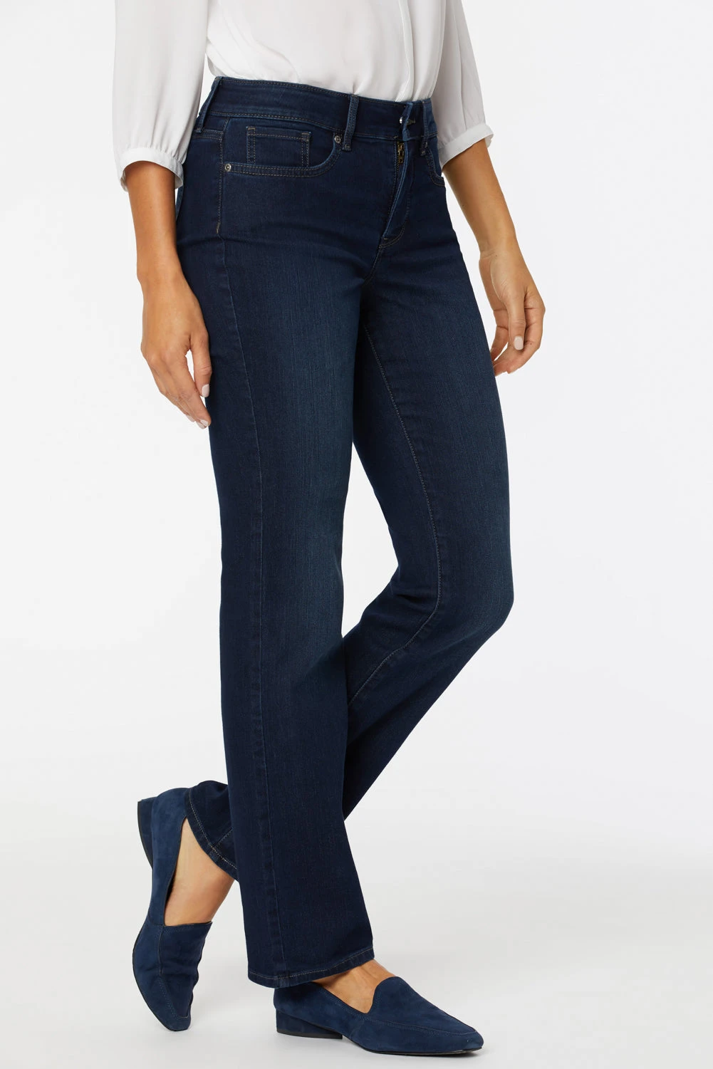 The easy, figure-elongating construction of the NYDJ Marilyn Straight Jeans pairs well with everything, thanks to a flattering waist and a versatile straight-leg fit. Lift Tuck® Technology uses a proprietary slimming panel with a patented criss-cross design to shape and support your curves for an always-sleek silhouette. Finished with classic five-pocket styling, zip fly and button closure.