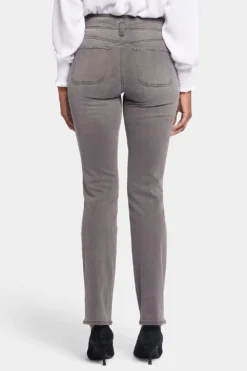 This classic fit can do no wrong. NYDJ’s easy, figure-elongating Marilyn Straight Jeans with High Rise and Frayed Hems have the versatile straight-leg silhouette you know and love with a higher rise than our original Marilyn Straight. Lift Tuck® Technology uses a proprietary slimming panel with a patented criss-cross design to shape and support your curves. Finished with four-pocket styling, a zip fly with button closure and frayed hems. This jean is made with earth-friendly methods that result in reduced consumption of water, chemicals and/or energy.
