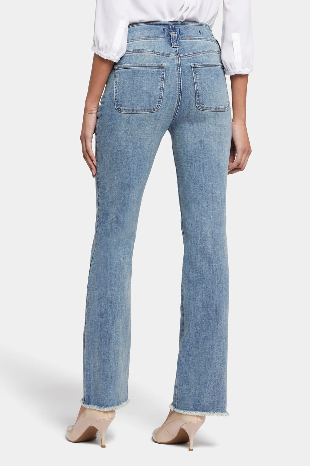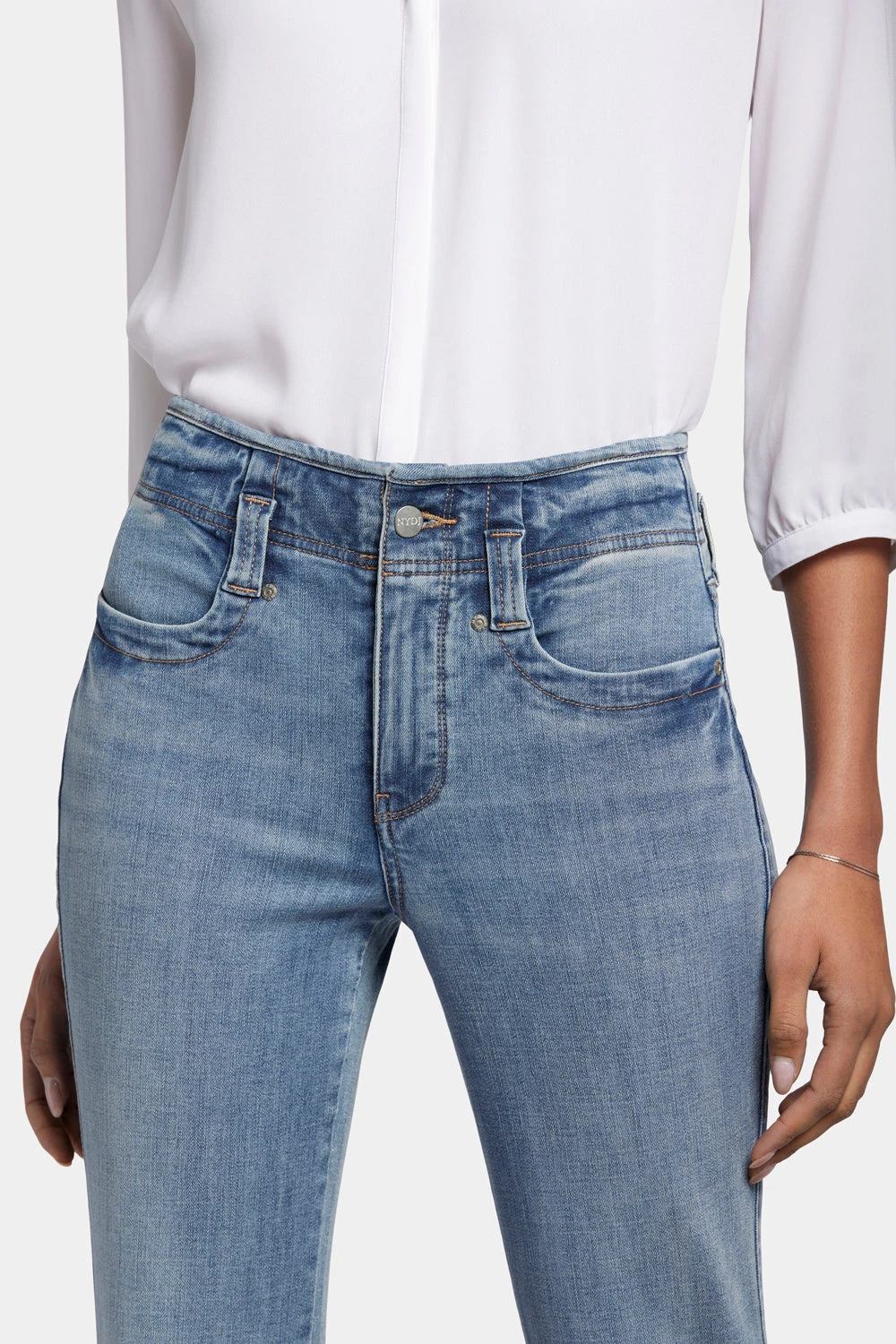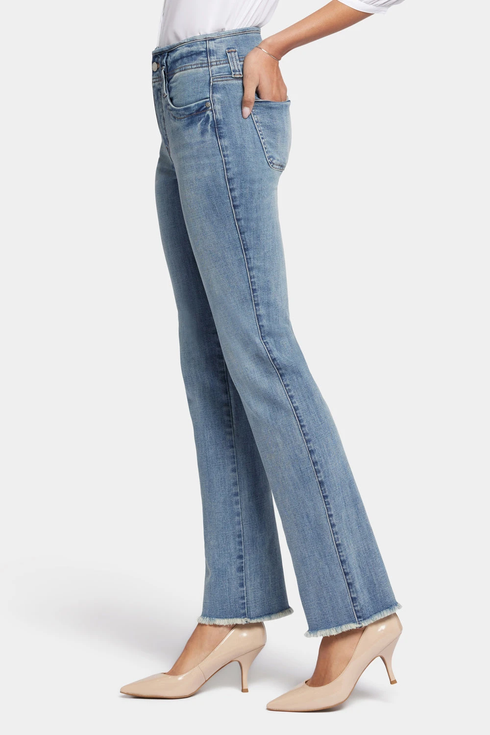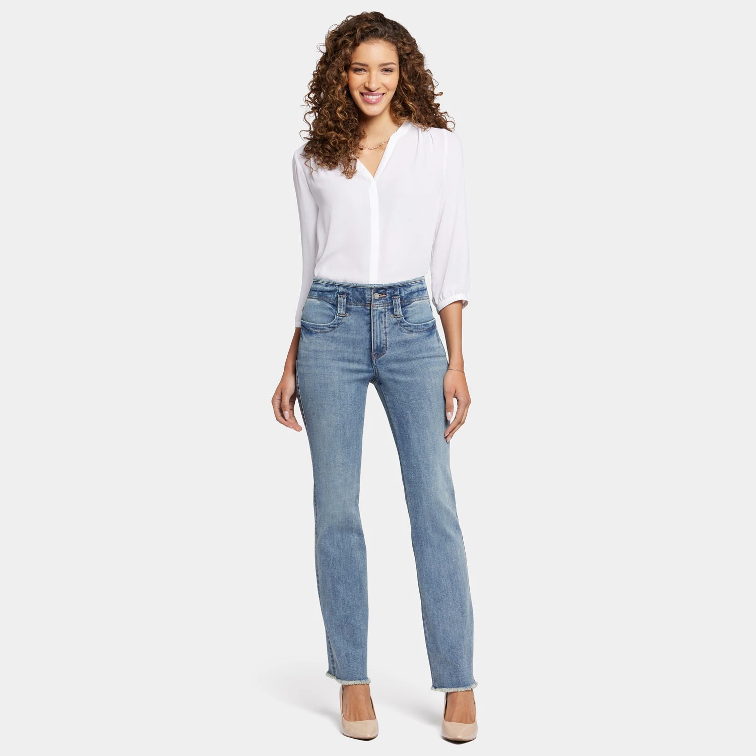 This classic fit can do no wrong. NYDJ’s easy, figure-elongating Marilyn Straight Jeans with High Rise and Frayed Hems have the versatile straight-leg silhouette you know and love with a higher rise than our original Marilyn Straight. Lift Tuck® Technology uses a proprietary slimming panel with a patented criss-cross design to shape and support your curves. Finished with four-pocket styling, a zip fly with button closure and frayed hems. This jean is made with earth-friendly methods that result in reduced consumption of water, chemicals and/or energy.