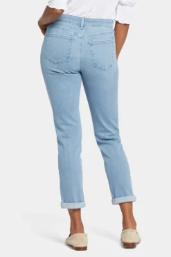 Have you heard the hype? NYDJ’s Marilyn Straight Jeans have combined with our unique Forever Slimming Technology for an ultra-flattering, silhouette-shaping result. A versatile, knee-to-hem, straight-leg fit without pockets or a waistband means your figure looks its best from every angle. The slimming self front panel and smoothing mesh back panel of our exclusive, Forever Slimming Technology give this pocket- and waistband-free style a super-sleek and flattering fit. Features a hidden front zipper.