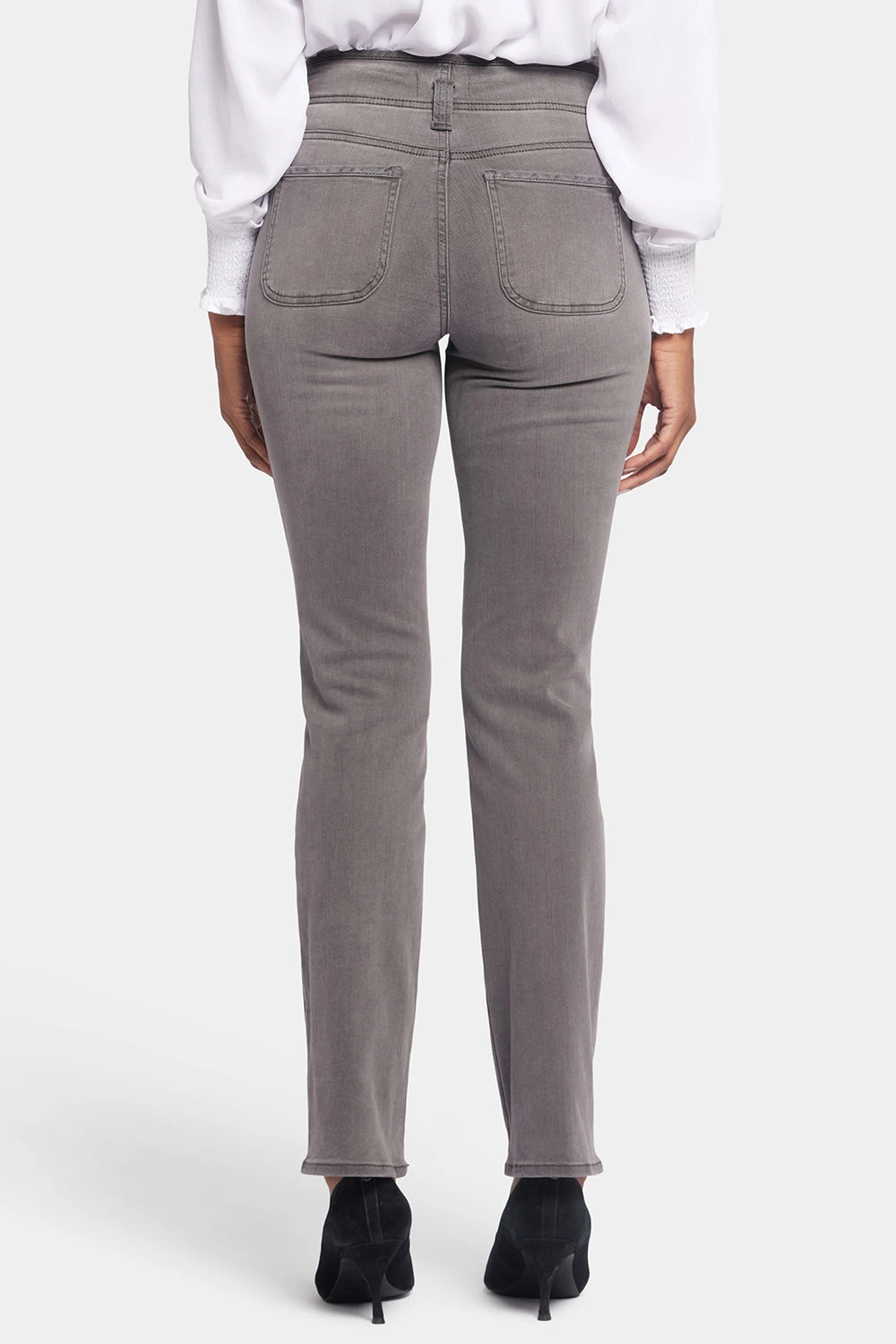 The sculpting, figure-elongating construction of the NYDJ Marilyn Straight Jeans with High Rise pairs well with everything, thanks to a versatile straight-leg fit. Lift Tuck® Technology uses a proprietary slimming panel with a patented criss-cross design to shape and support your curves for an always-sleek silhouette. Finished with four pockets, zip fly and button closure.Â