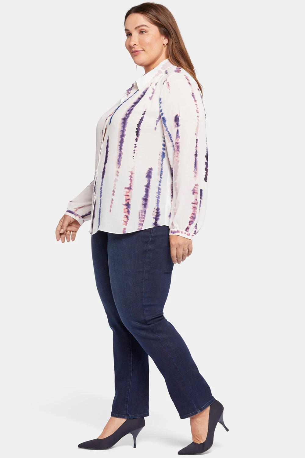 NYDJ’s Modern Blouse is sure to be the most popular attendee at every event this season. This classic, collared blouse is embellished with romantic gathers at the shoulder and sleeve for a perfect day or night look. This blouse is made with a sustainable polyester fiber created from 100% post-consumer plastic waste, resulting in less water and energy use and fewer greenhouse gas emissions without changing the look and feel of the fabric.