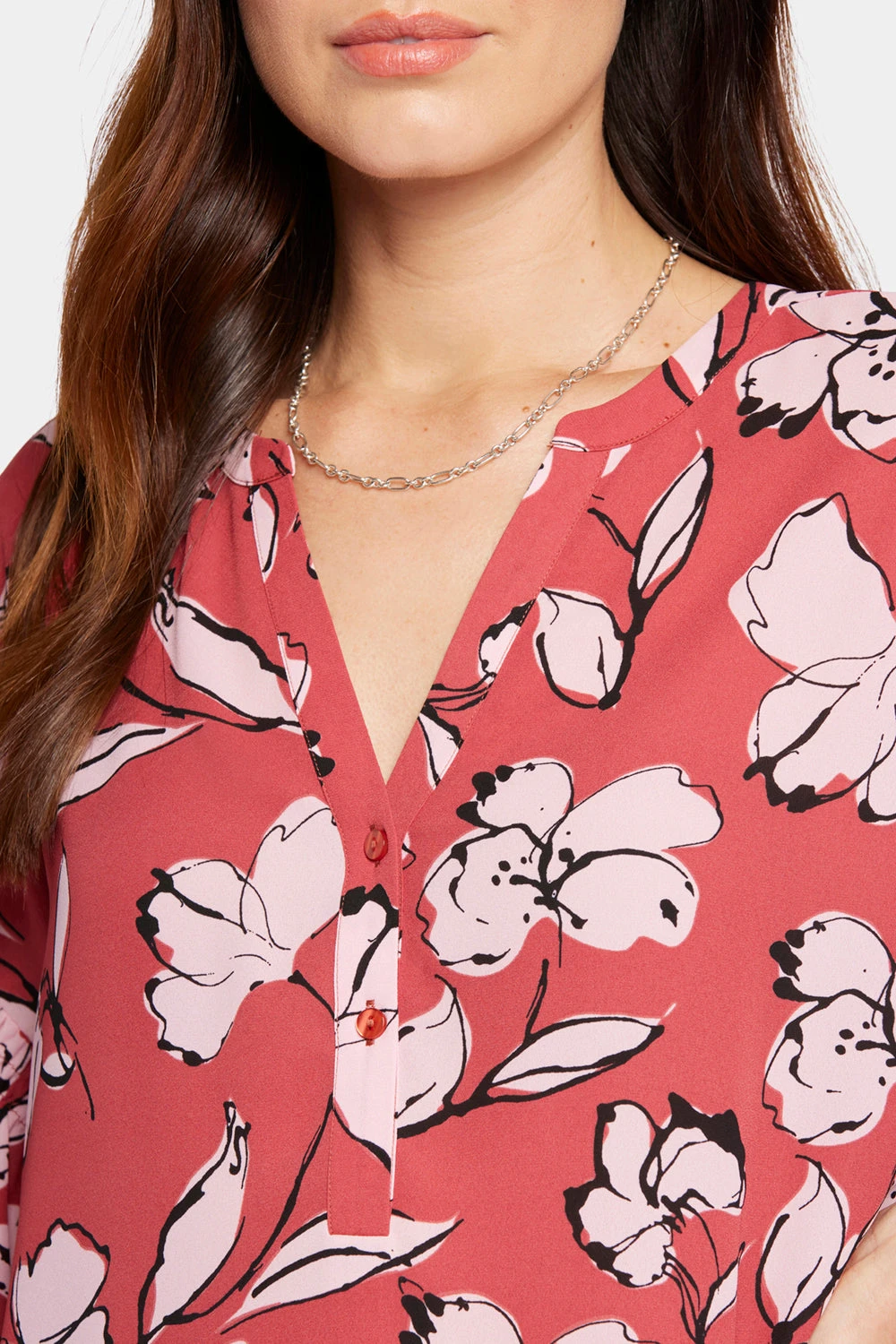 Pretty meets polished in the Paulina Peasant Blouse by NYDJ. The easy silhouette pairs perfectly with your favorite denim, while dropped, gathered sleeves offer effortless feminine style. It’s accented with soft gathers at the back and finished with button front closures. This blouse’s fabric is made with a sustainable polyester fiber created from 100% post-consumer plastic waste, resulting in less water and energy use and fewer greenhouse gas emissions without changing the look and feel of the fabric. The buttons are made with 50% post-consumer recycled polyester.