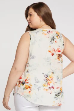 NYDJ’s Pintuck Blouse boasts a billowy three-quarter-sleeved silhouette that’s perfect when paired with any of our slimming denim styles. Pleating at the back yoke creates a sophisticated yet easy drape. Split round neckline with covered full front placket and button closures. This blouse is made with a sustainable polyester fiber created from 100% post-consumer plastic waste, resulting in less water and energy use and fewer greenhouse gas emissions without changing the look and feel of the fabric.