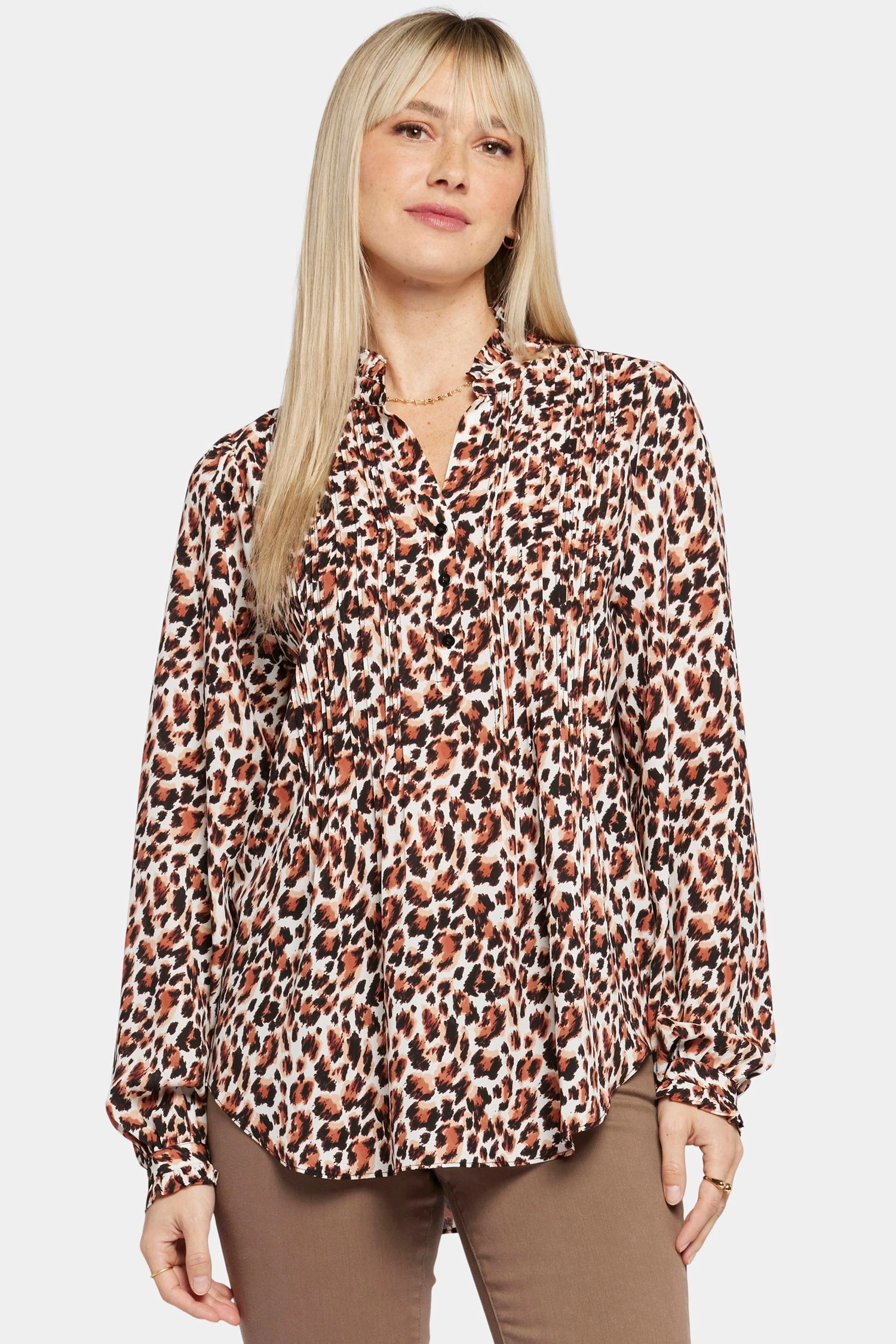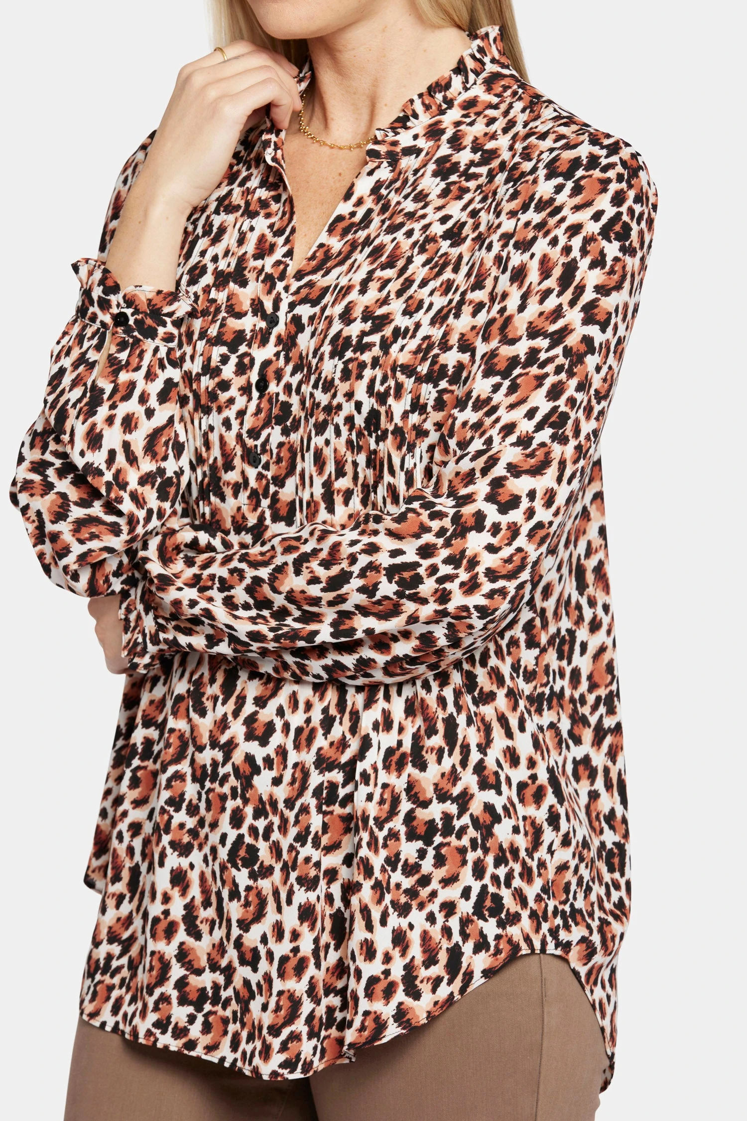 Finely crafted details lend a romantic vintage look to NYDJ’s Pleated Front Tunic. This pullover blouse features a stand collar and long, full sleeves with ruffled cuffs, as well as front and back pleating and a front button placket. The tunic length and curved hem make this style perfect for layering over skinny jeans, slim ponte pants and leggings. This tunic’s fabric is made with a sustainable polyester fiber created from 100% post-consumer plastic waste, resulting in less water and energy use and fewer greenhouse gas emissions without changing the look and feel of the fabric. The buttons are made with 50% post-consumer recycled polyester.