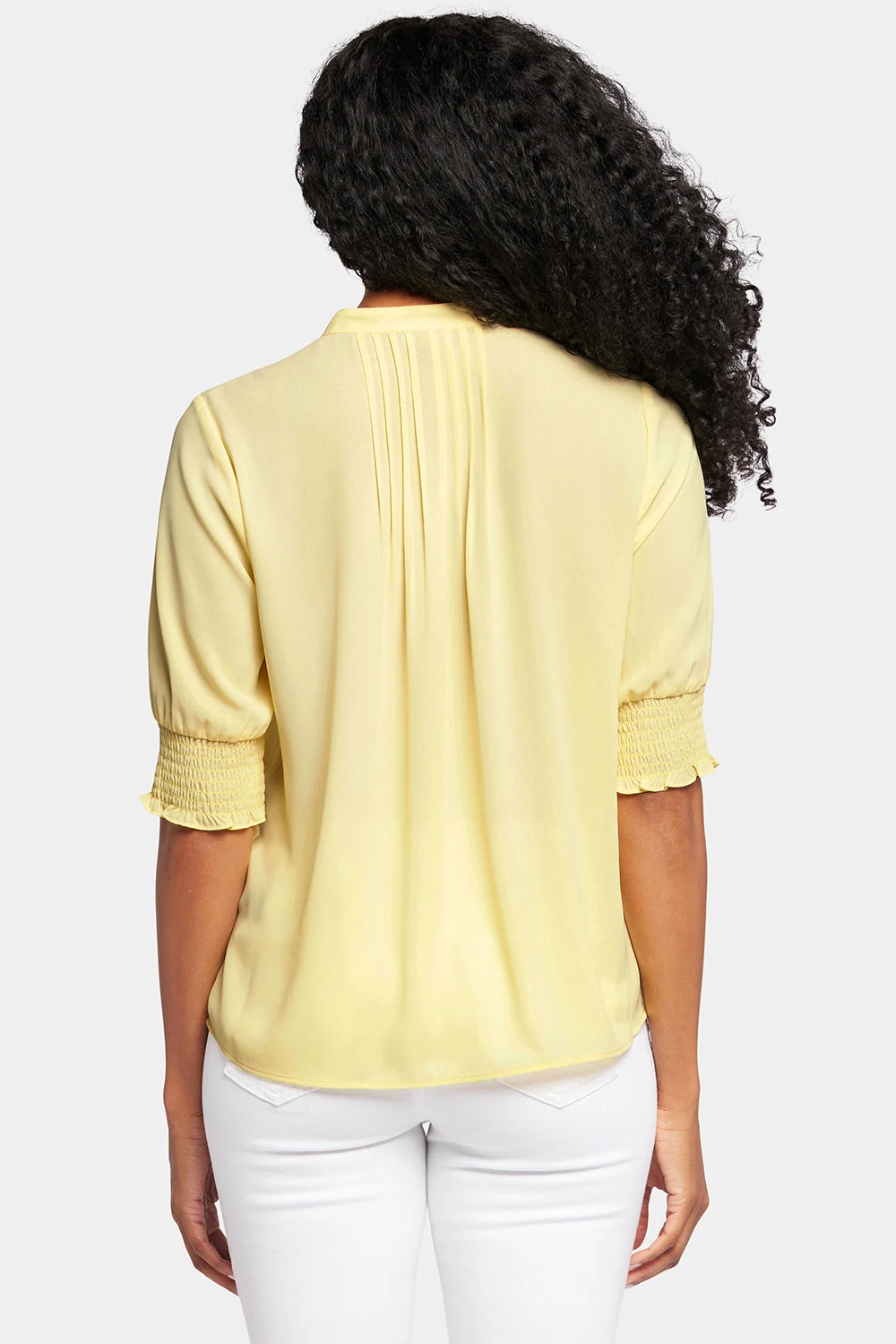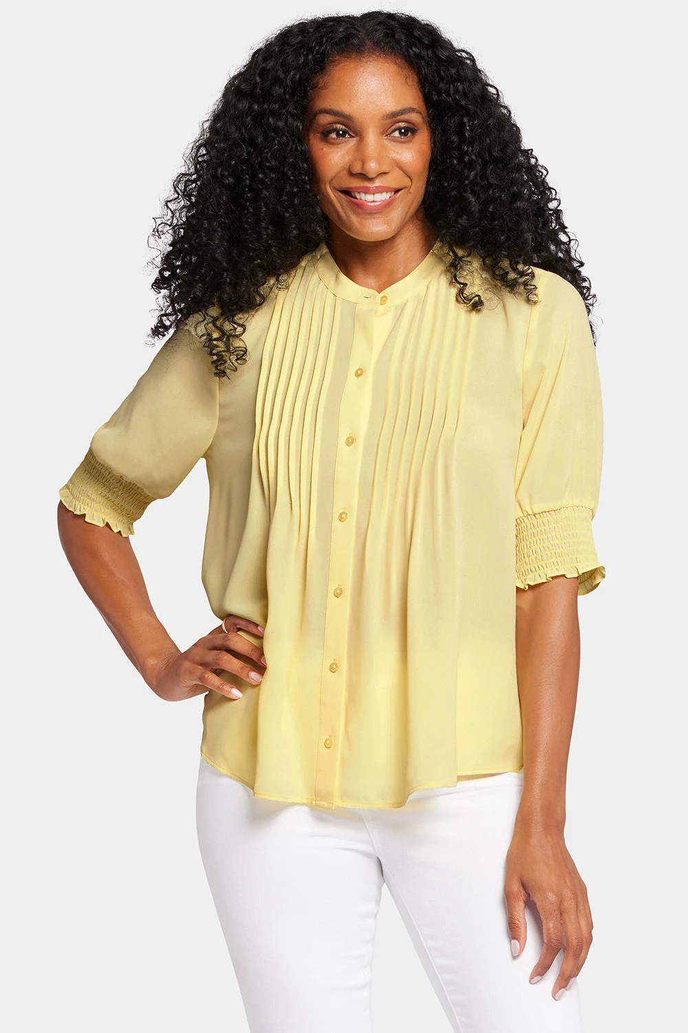 Pleated Short Sleeved Blouse – Yellow Daisy