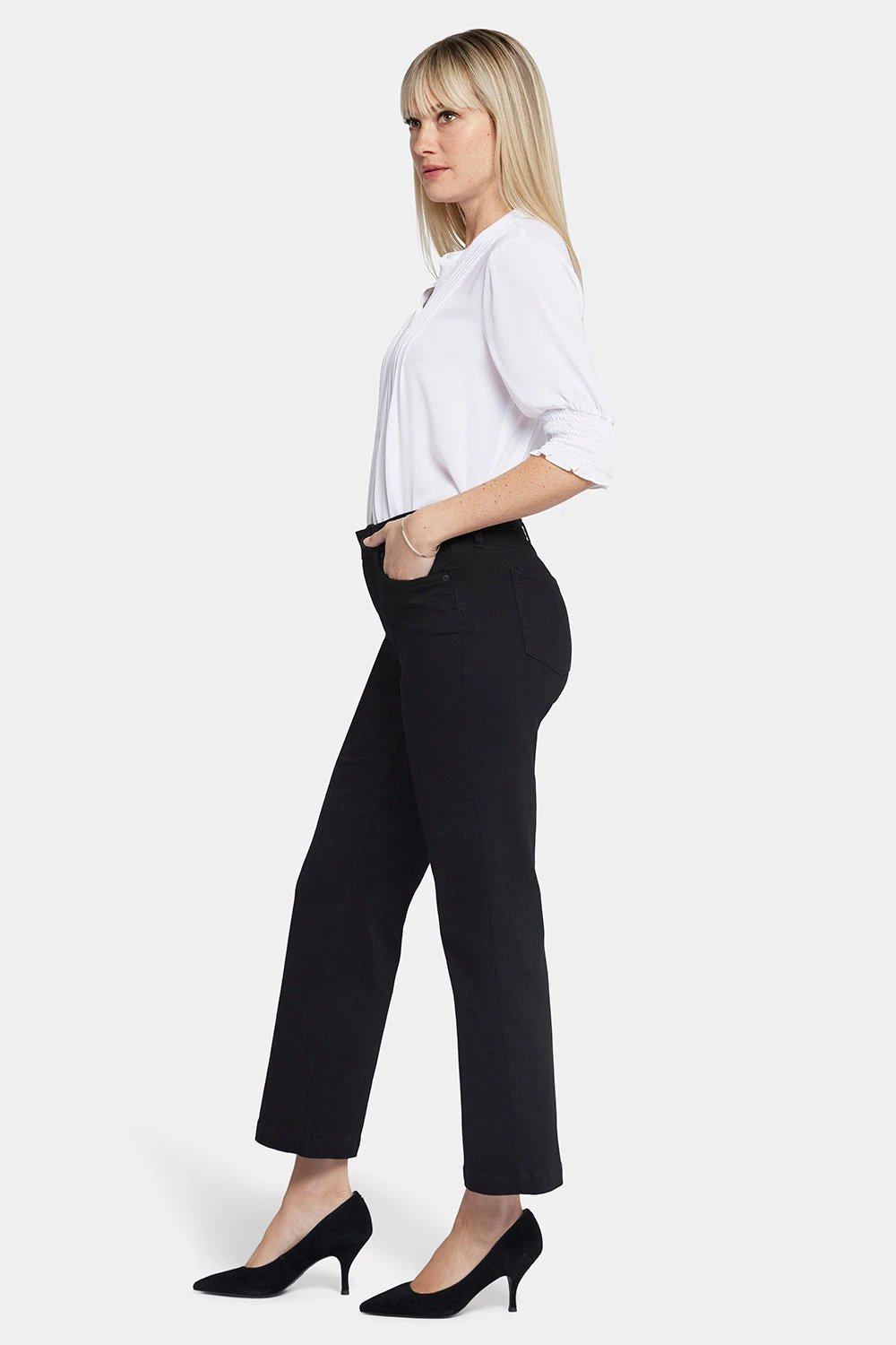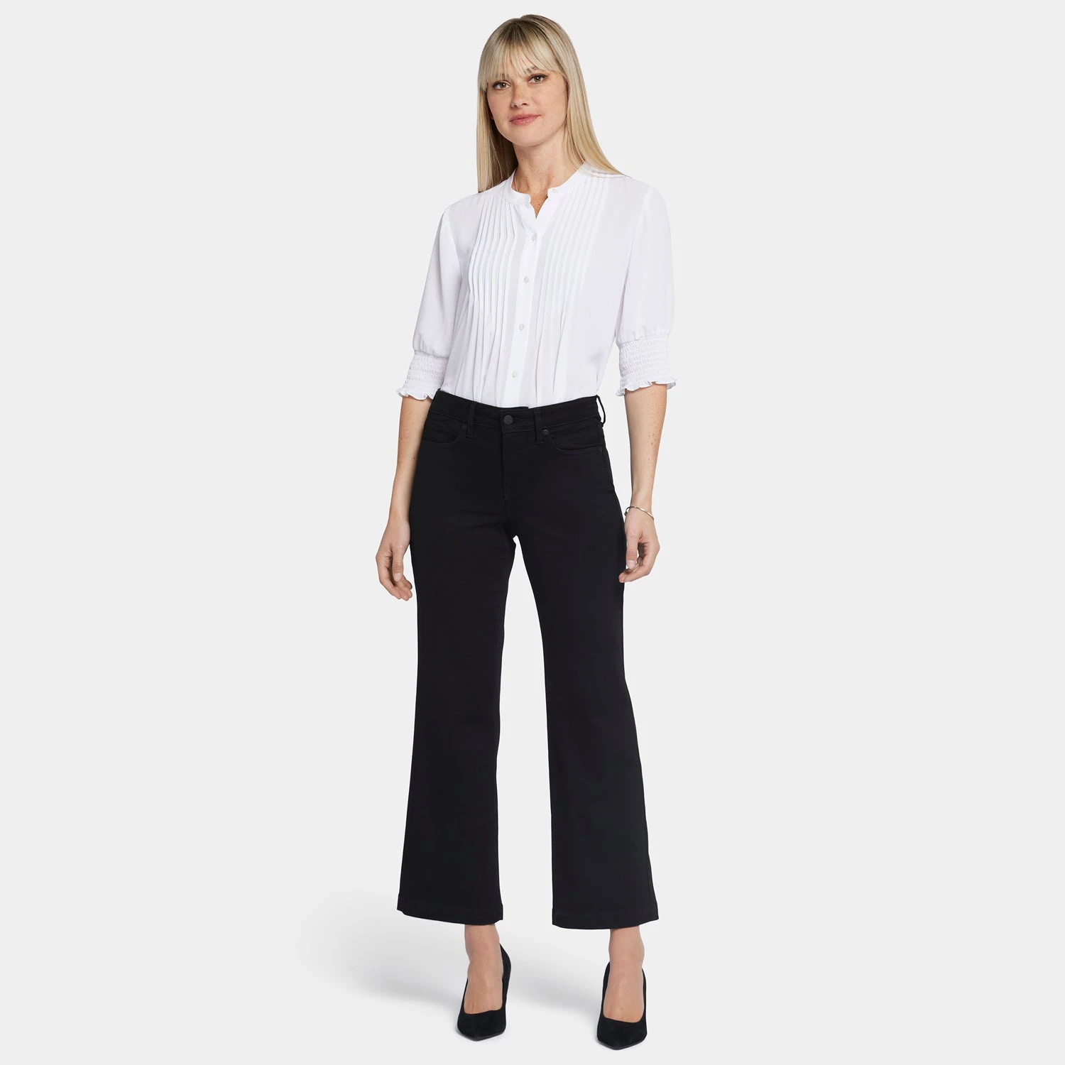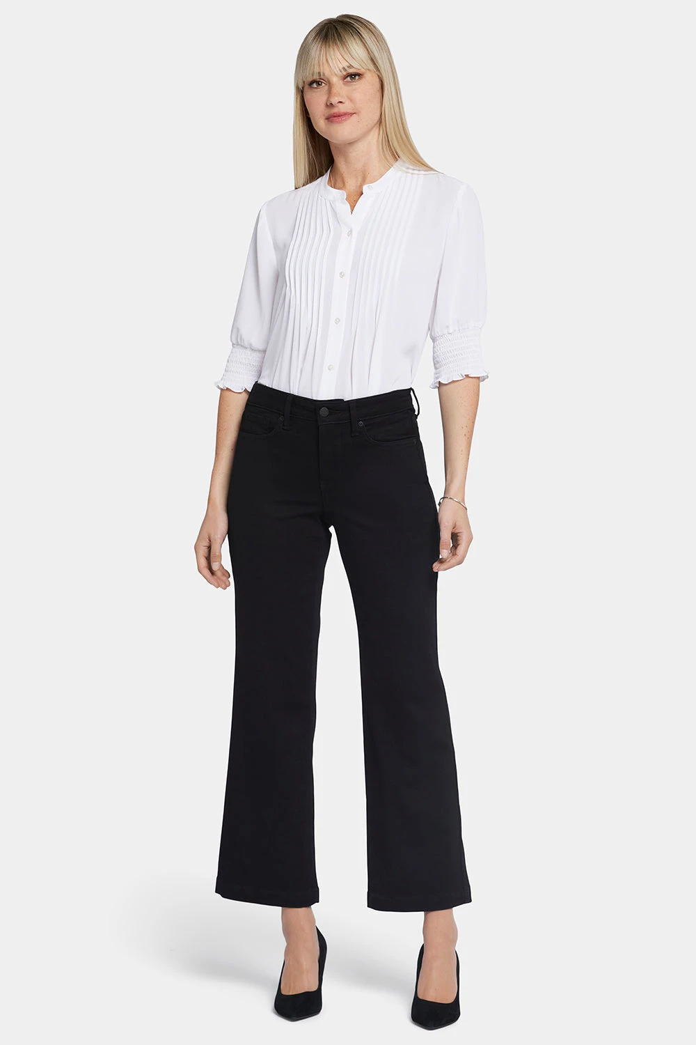 Bold and on trend, NYDJ’s Relaxed Flared Jeans are loose through the thigh and knees with exaggerated flare at the ankle. The design also includes our Lift Tuck® Technology, which uses a proprietary slimming panel to flatten in front and flatter curves in back. Features five-pocket styling, a zip fly and a button closure. This jean is made with earth-friendly methods that result in reduced consumption of water, chemicals and/or energy.