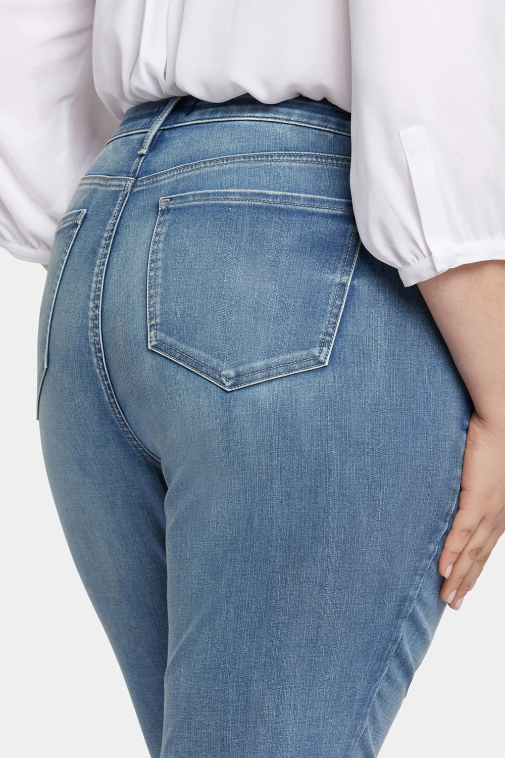 The easy straight-leg silhouette of NYDJ’s Relaxed Piper Crop Jeans in Plus Size in Cool Embrace® Denim is so flattering, especially combined with our signature no-gap higher rise that hits at the natural waist. It’s also laid back and fun—just the jean you want to wear with tanks and tees as the weather warms up. Cool Embrace® Denim makes rising temperatures a breeze by using best-of-its-kind, moisture-wicking technology to keep you cool and comfortable. Lift Tuck® Technology helps create a smoother fit in front using our proprietary slimming panel with a patented criss-cross design. Features five-pocket styling and a zip fly with button closure. Romance is a medium wash that features tucks and highs and lows along seams, soft whiskers on the front hips, thigh sanding and distressing on the pockets and hems.
