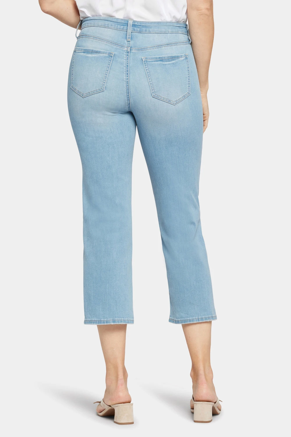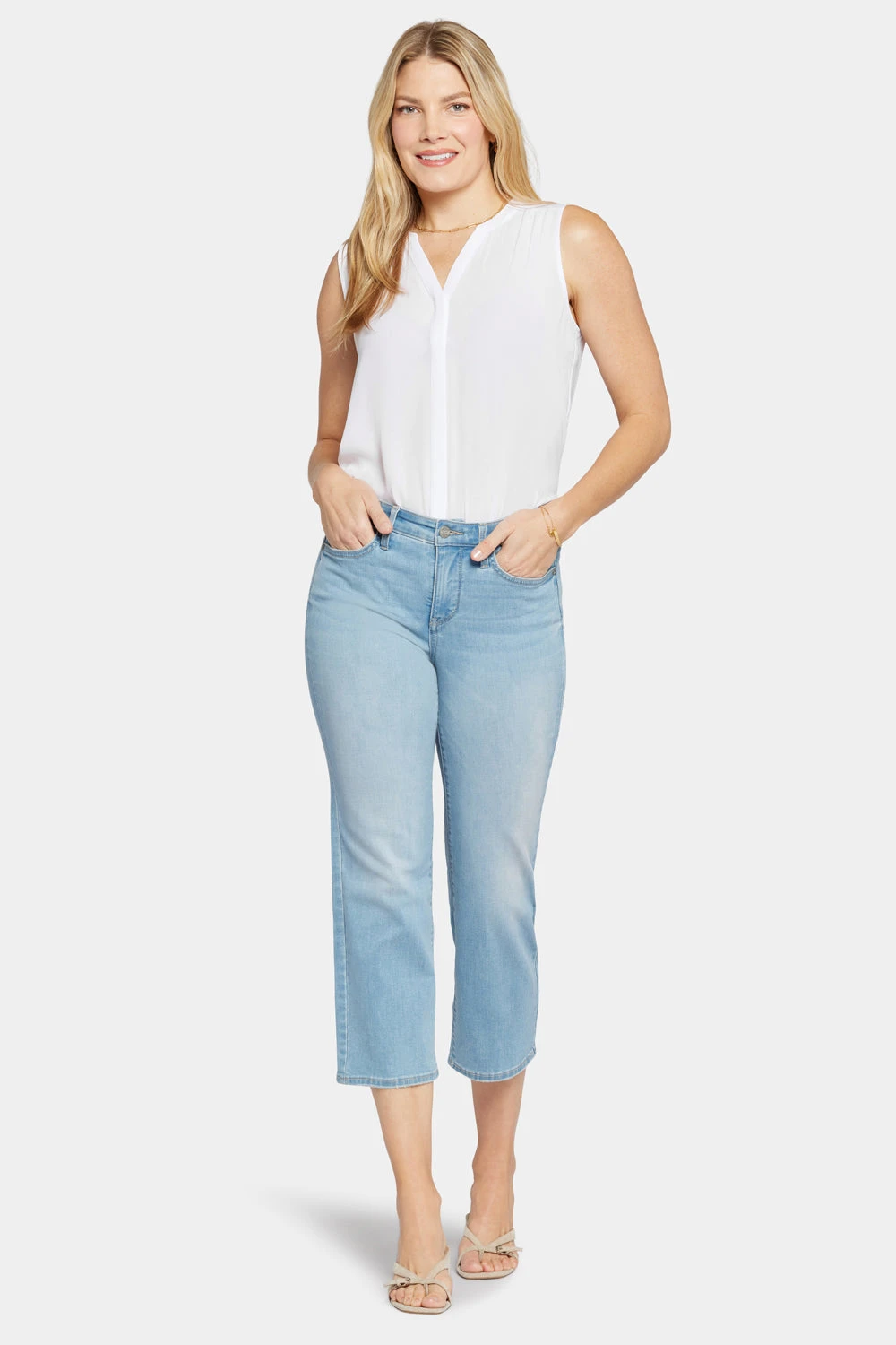 The easy straight-leg silhouette of NYDJ’s Relaxed Piper Crop Jeans in Cool Embrace® Denim is so flattering, especially combined with our signature no-gap higher rise that hits at the natural waist. It’s also laid back and fun—just the jean you want to wear with tanks and tees as the weather warms up. Cool Embrace® Denim makes rising temperatures a breeze by using best-of-its-kind, moisture-wicking technology to keep you cool and comfortable. Lift Tuck® Technology helps create a smoother fit in front using our proprietary slimming panel with a patented criss-cross design. Features five-pocket styling and a zip fly with button closure.
