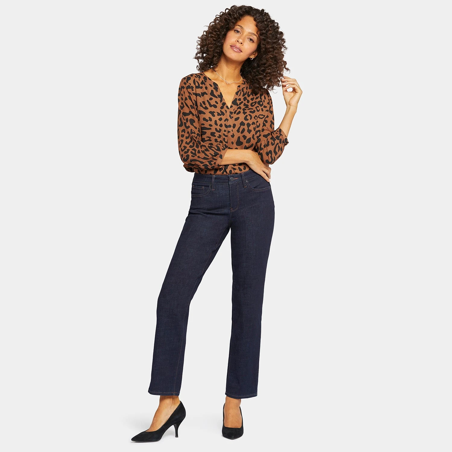 Offering a relaxed fit that’s on the slimmer side, NYDJ’s Relaxed Slender Jeans are slightly loose through the thigh and gently tapered from knee to ankle. The design also includes our Lift Tuck® Technology, which uses a proprietary slimming panel to flatten in front and flatter curves in back. Features five-pocket styling, a zip fly and a button closure. Magical is a rich, dark indigo wash with a clean, classic look and copper contrast stitching. This jean is made with earth-friendly methods that result in reduced consumption of water, chemicals and/or energy.