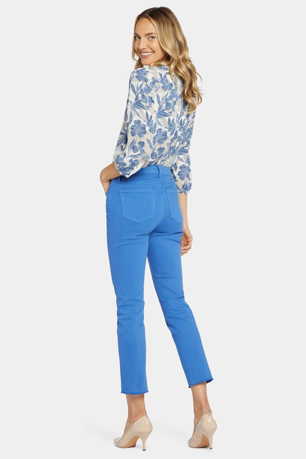 Prepare yourself for more than a few admiring stares. NYDJ’s Sheri Slim Ankle Jeans are an expertly cut fit that’s always in season. Lift Tuck® Technology uses a proprietary slimming panel with a patented criss-cross design to shape and support your curves for an always-sleek silhouette. Features frayed hems, classic five-pocket styling, zip fly and button closure. This jean is made with earth-friendly methods that result in reduced consumption of water, chemicals and/or energy.