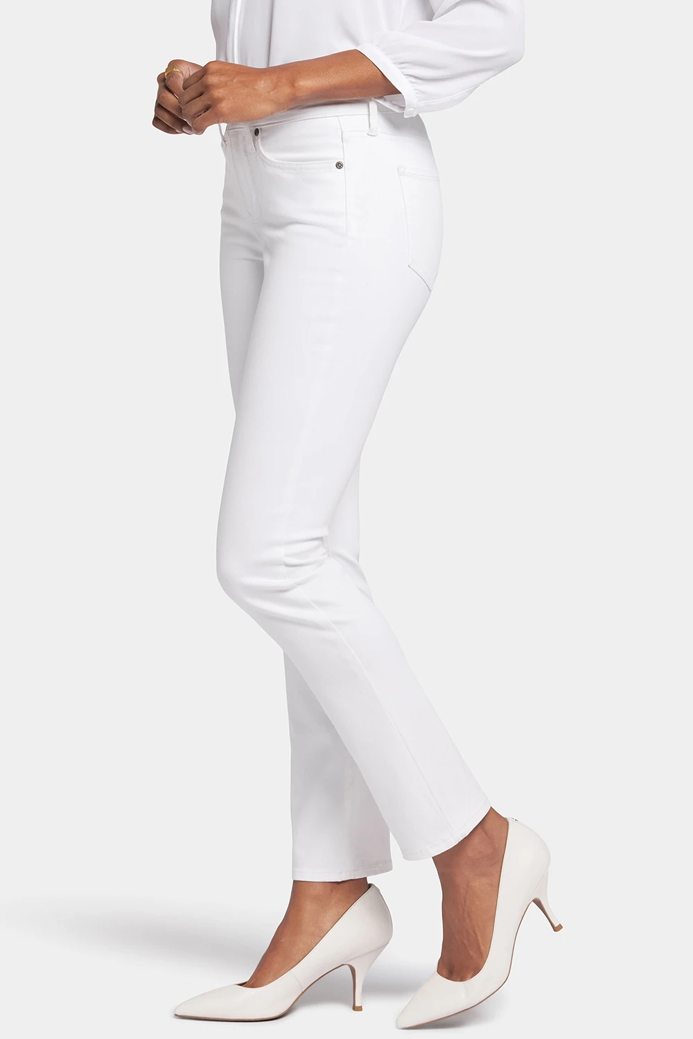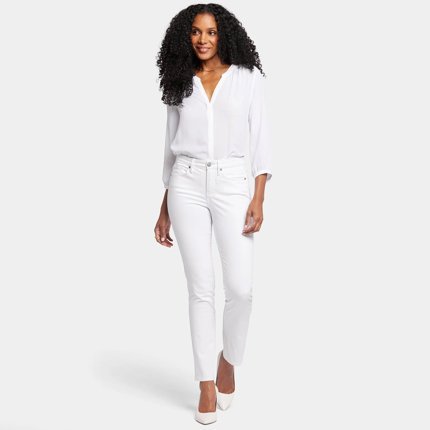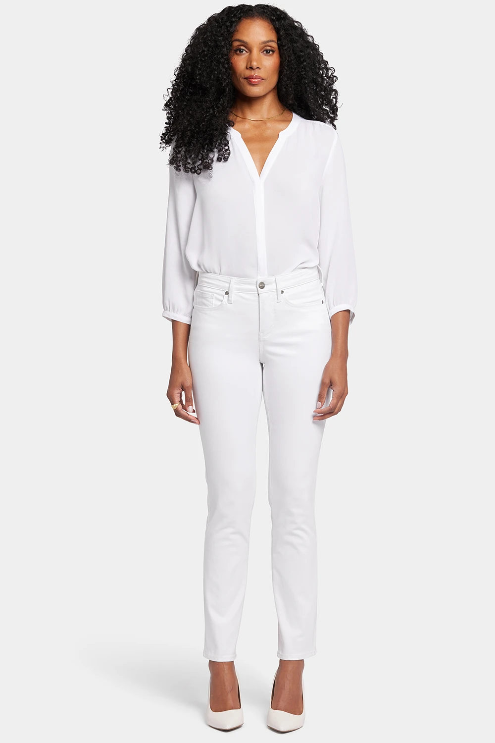 Prepare yourself for more than a few admiring stares. NYDJ’s Sheri Slim Jeans in Petite feature an expertly cut fit that’s always in season. Enhance your assets and streamline your silhouette with our signature Lift Tuck® Technology, which flattens and flatters using a proprietary slimming panel with a patented criss-cross design. Features classic five-pocket styling, zip fly and button closure.