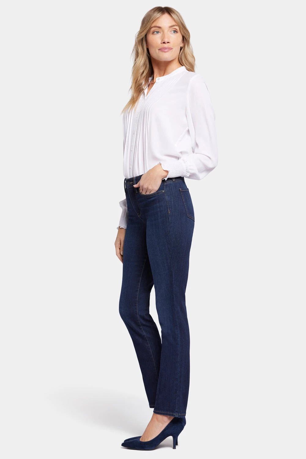 Prepare yourself for more than a few admiring stares. NYDJ’s Sheri Slim Jeans feature an expertly cut fit that’s always in season. Enhance your assets and streamline your silhouette with our signature Lift Tuck® Technology, which flattens and flatters using a proprietary slimming panel with a patented criss-cross design. Sure Stretch® denim technology gives your favorite pair of jeans their unparalleled stretch while keeping them in perfect condition, thanks to a high-performance fabric that helps them retain their shape, wear after wear. Features classic five-pocket styling, zip fly and button closure. Northbridge is a deep, rich indigo wash with soft sanding on the front thighs and feathered whiskers. This jean is made with earth-friendly methods that result in reduced consumption of water, chemicals and/or energy.