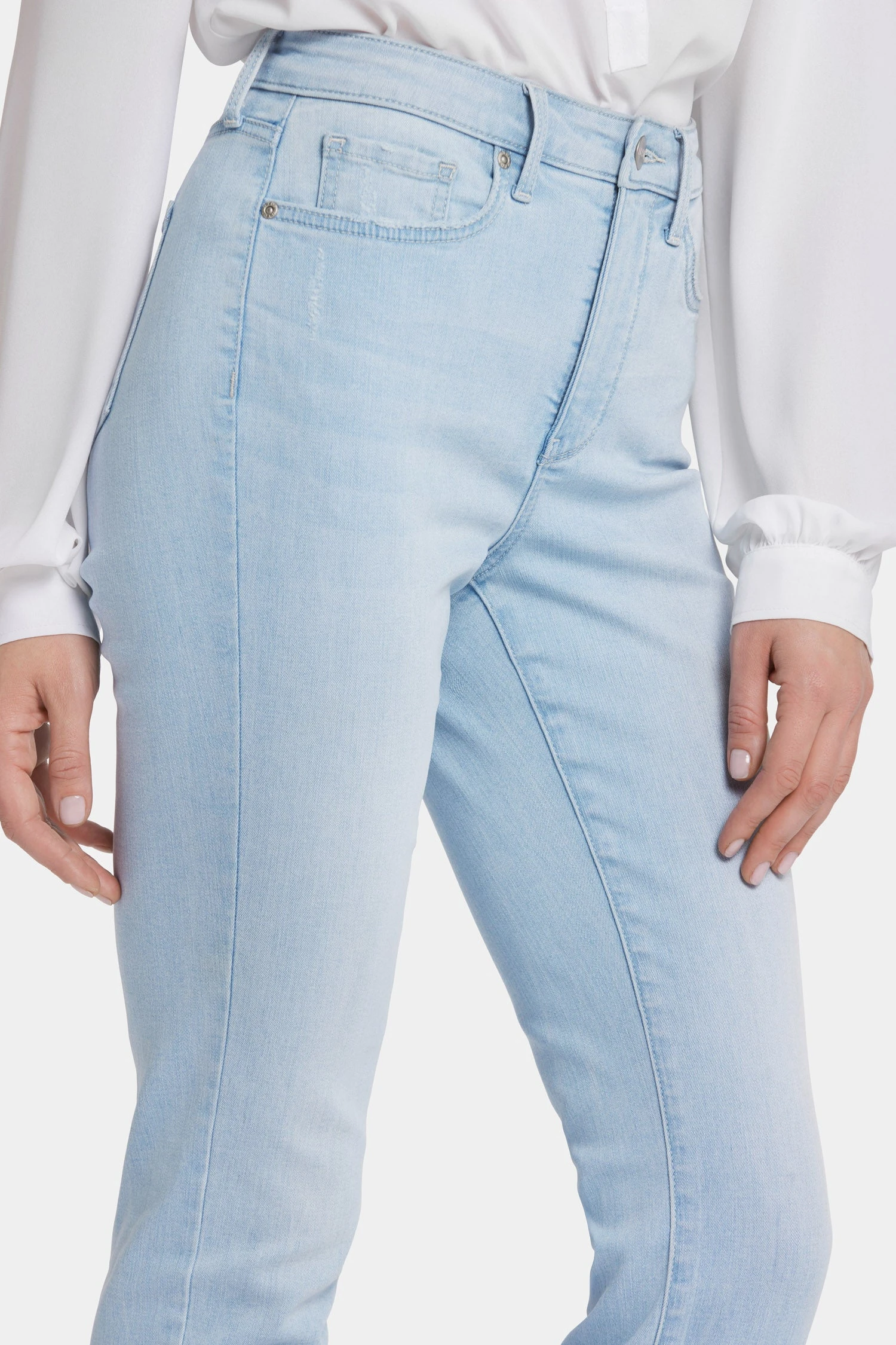 Prepare yourself for more than a few admiring stares. NYDJ’s Sheri Slim Jeans with High Rise by NYDJ feature an expertly cut fit that’s always in season. Enhance your assets and streamline your silhouette with our signature Lift Tuck® Technology, which flattens and flatters using a proprietary slimming panel with a patented criss-cross design. Features classic five-pocket styling, zip fly and button closure. Santorini is a powder blue wash with a soft vintage look. This jean is made with earth-friendly methods that result in reduced consumption of water, chemicals and/or energy.